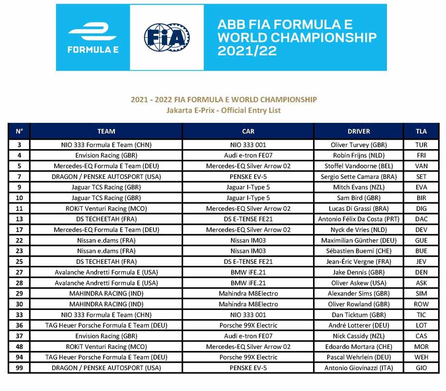 2022 ABB FIA FORMULA E JAKARTA E-PRIX TIMETABLE
