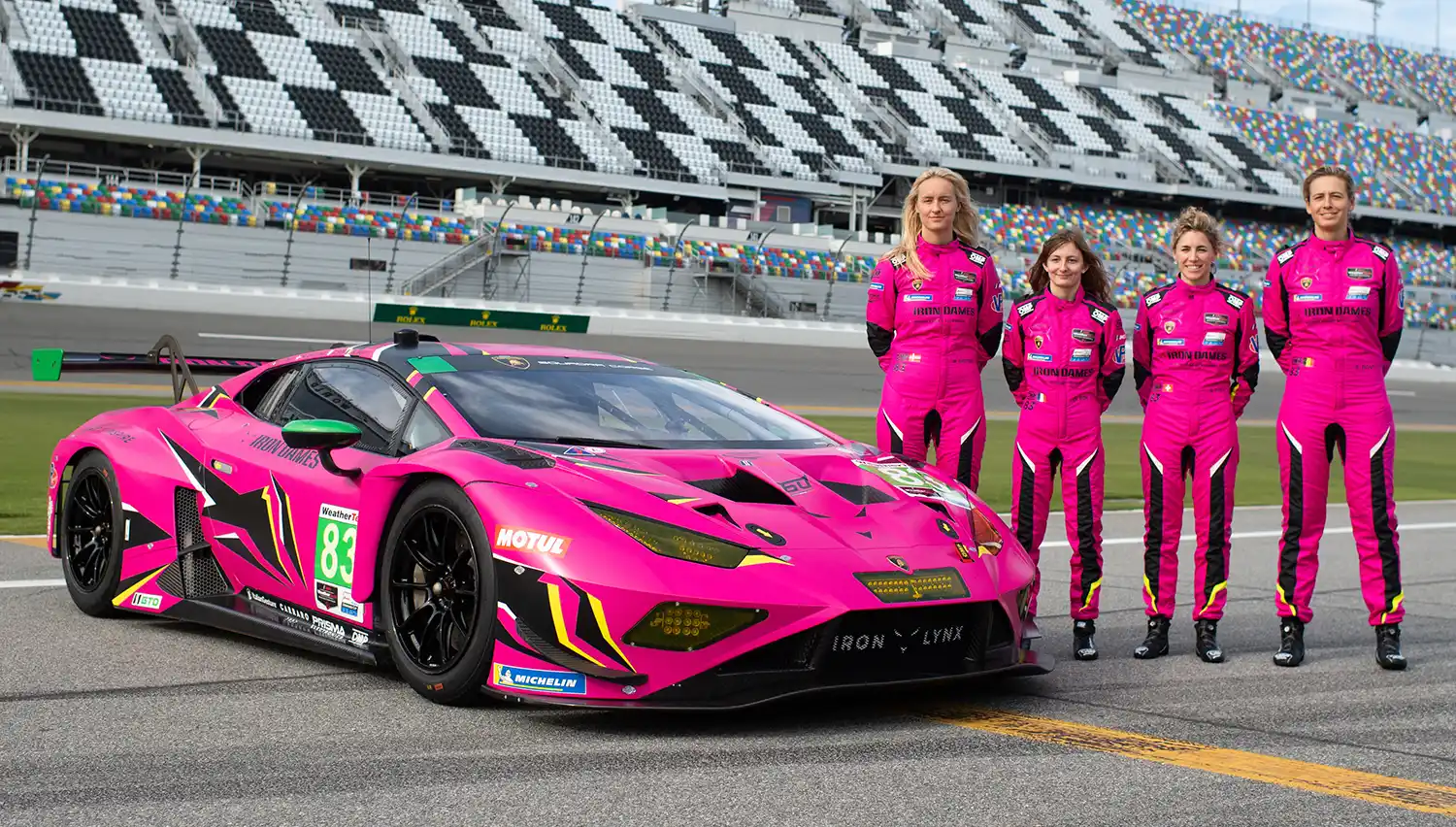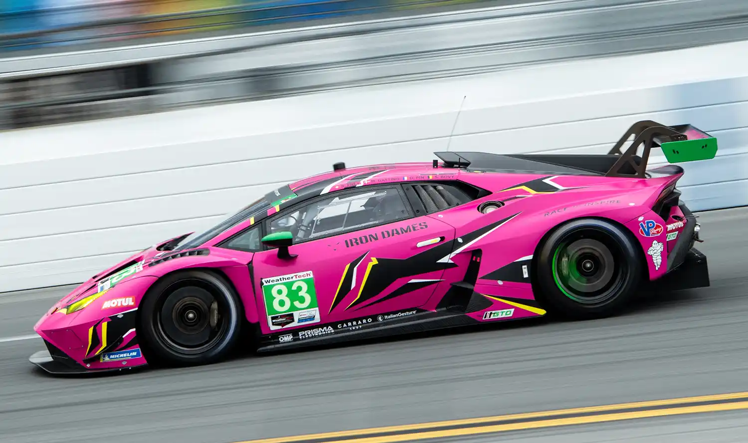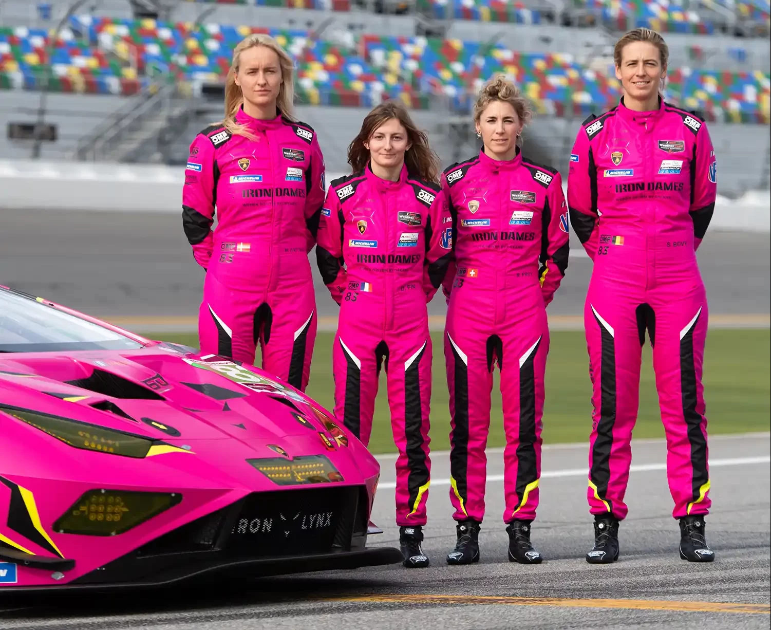 Women driven by dreams: these are the Iron Dames, behind the wheel of the Lamborghini Huracán GT3 EVO2 number #83, colored hot pink like the racing suits that set them apart in the paddock in their mission to “Race to inspire”.