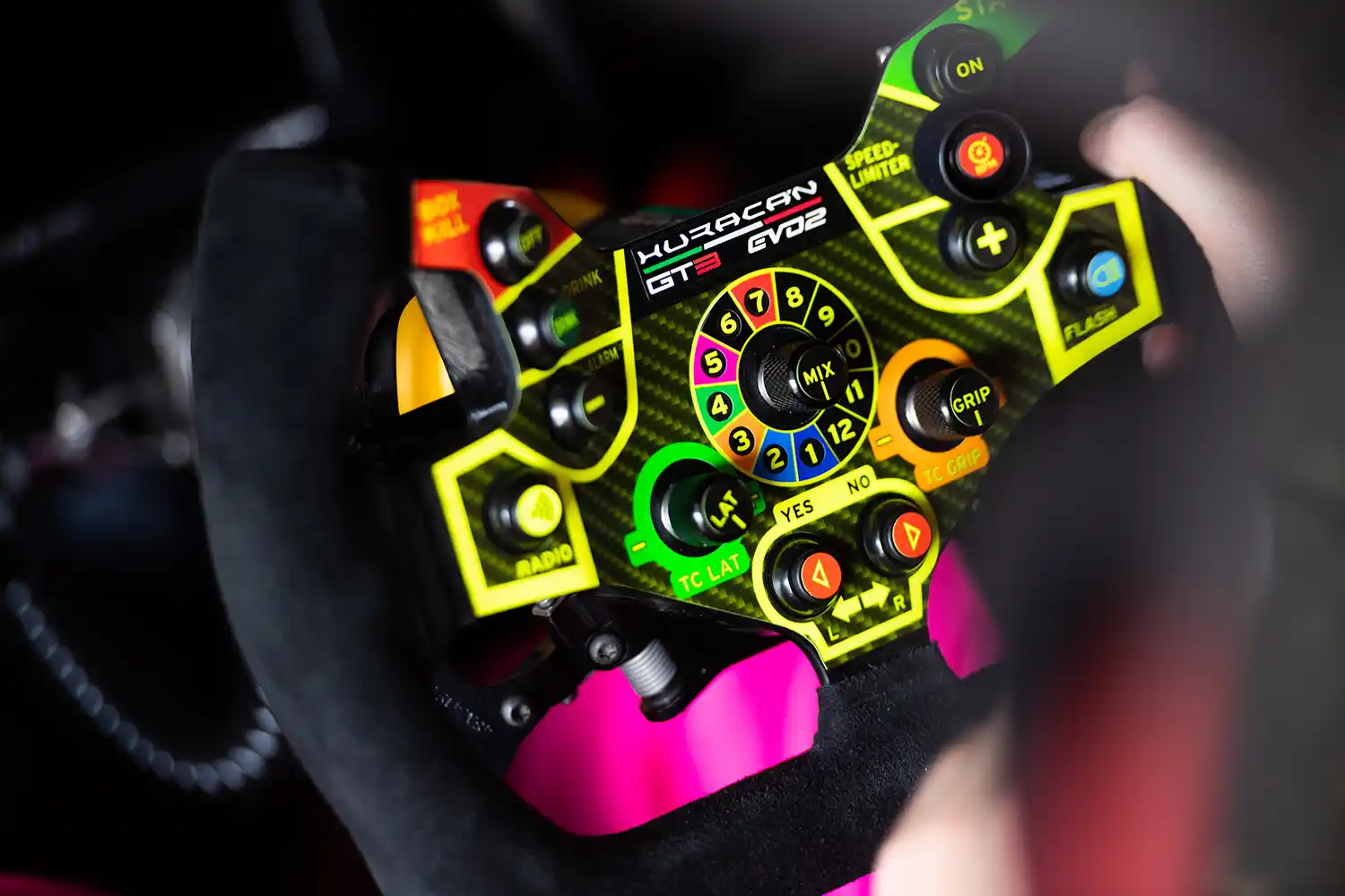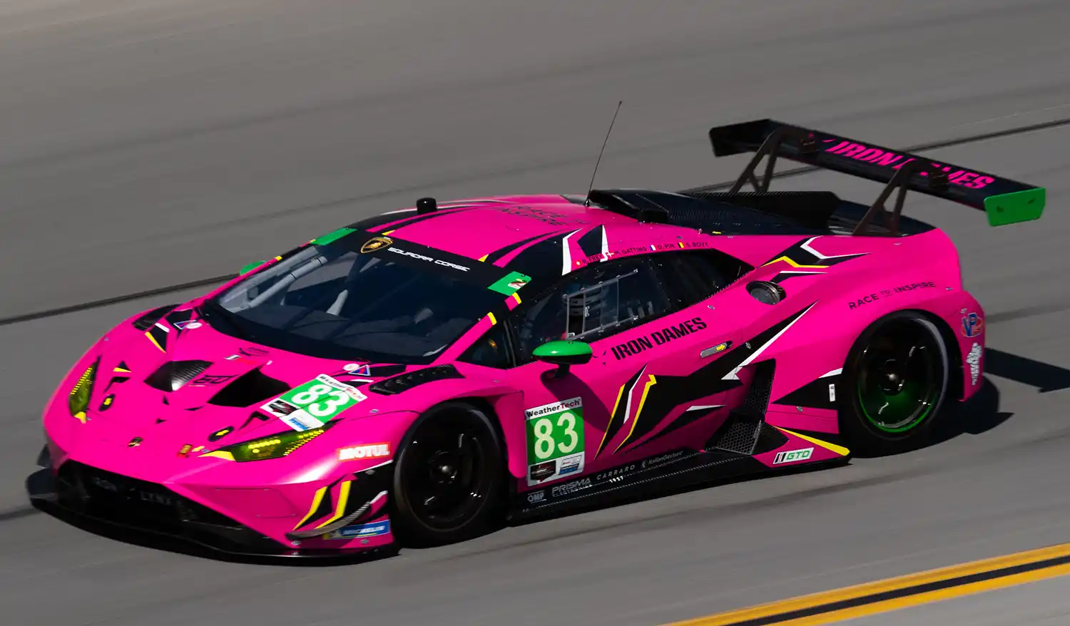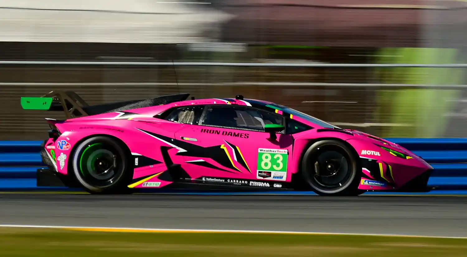 Women driven by dreams: these are the Iron Dames, behind the wheel of the Lamborghini Huracán GT3 EVO2 number #83, colored hot pink like the racing suits that set them apart in the paddock in their mission to “Race to inspire”.