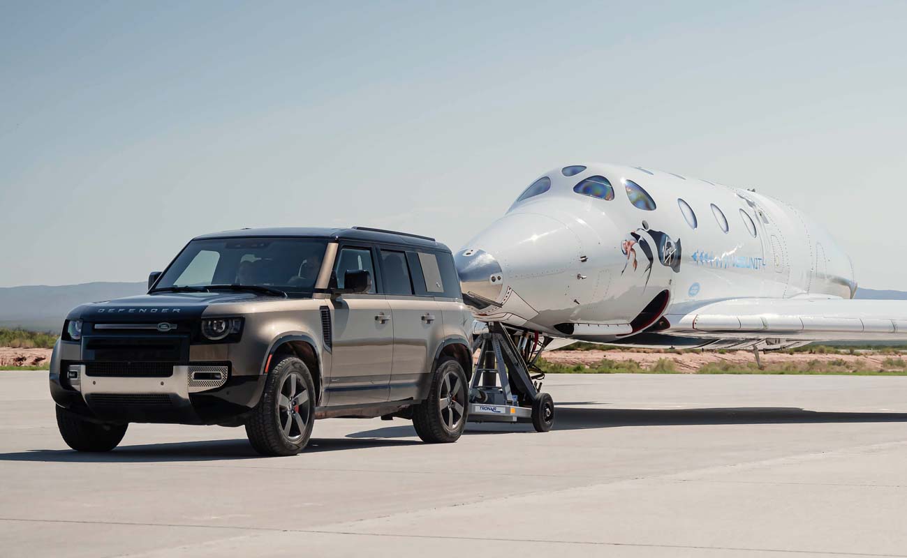 The SpaceShipTwo Unity craft travelled with four Mission Specialists and two pilots on board. The six-strong crew started and completed their mission at Spaceport America in New Mexico. Sir Richard arrived for the ‘Unity 22’ mission in a Range Rover Astronaut Edition and after a safe landing his spacecraft was towed back to waiting well-wishers by a Land Rover Defender 110.