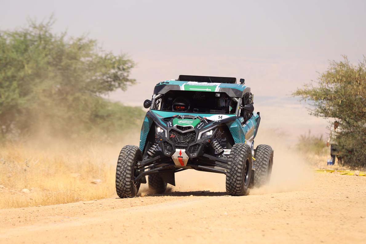 Saudi Arabia’s Saleh Al-Saif began cautiously on his co-driver Feisal Al-Suwayh’s first ever rally and held fifth in his T4 Can-Am Maverick X3 before retiring after an accident in a ditch caused a broken drive shaft in SS5. Ahmad Khaled also withdrew on the fifth stage with engine damage but local driver Ihab Al-Shorafa was classified in seventh in his Mitsubishi.