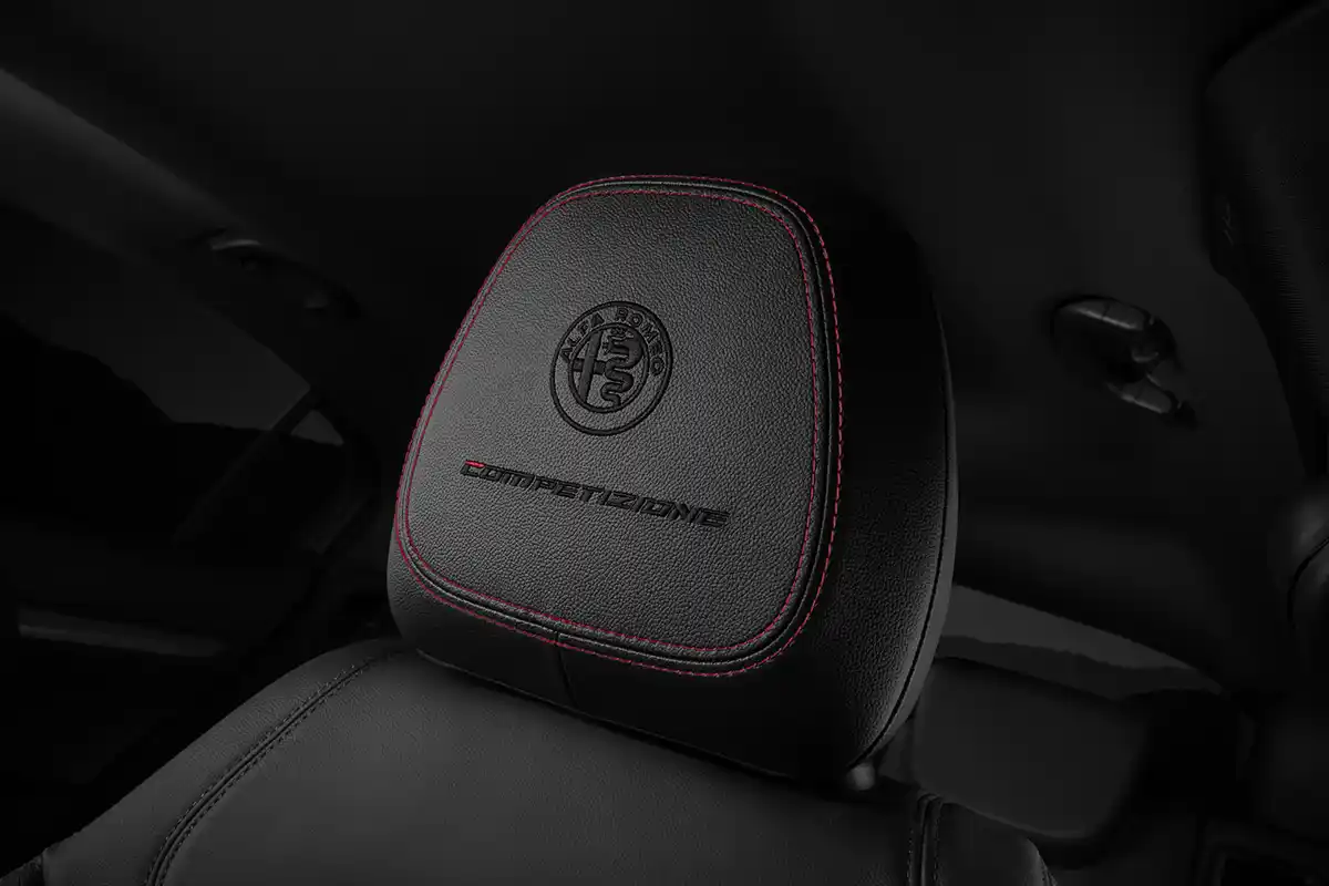 Alfa Link suspension: Driving an Alfa Romeo vehicle is an unforgettable sensation. This is also due to the exclusive Alfa Link™ suspension architecture. On the front, a double wishbone suspension with a semi-virtual steering axis (an Alfa Romeo exclusive) was selected for the front, optimizing the filtering effect and allowing one to steer quickly and precisely for uncompromised handling. On the rear, a multilink solution was opted for, with four and a half arms – an Alfa Romeo patent – that ensure enhanced handling combined with excellent comfort. As an exclusive on the Competizione special series, there is the Alfa™ Active Suspension, with an electronically controlled damping system, which adapts to driving conditions instant by instant, enabling the driver to opt for more performance-biased or comfort-oriented handling.