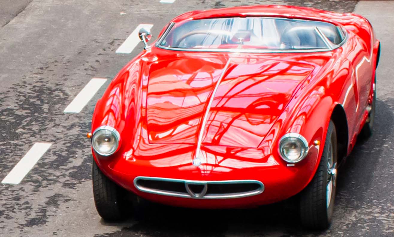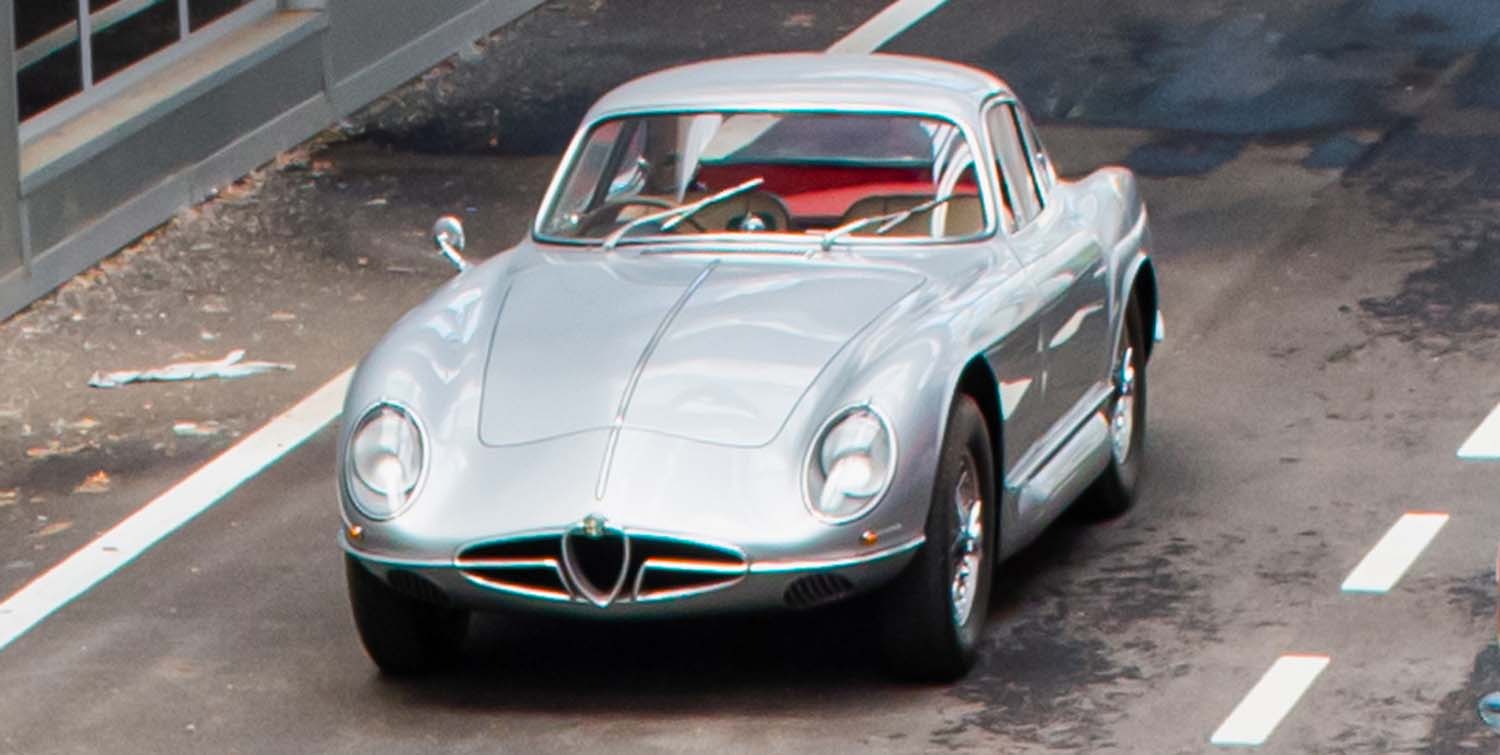 The car also includes 5-speed transmission, “De Dion” rear suspension and aluminum bodywork. Its lines are slender and highly elegant: the Sportiva was also made to a Bertone design by Franco Scaglione, who also created its near-contemporary the Giulietta Sprint, as well as the Giulietta SS and 33 Stradale. Indeed, the 2000 Sportiva’s rear window, back and boot would be successfully repeated in the Giulietta Sprint, if of course recalibrated for the differing proportions.