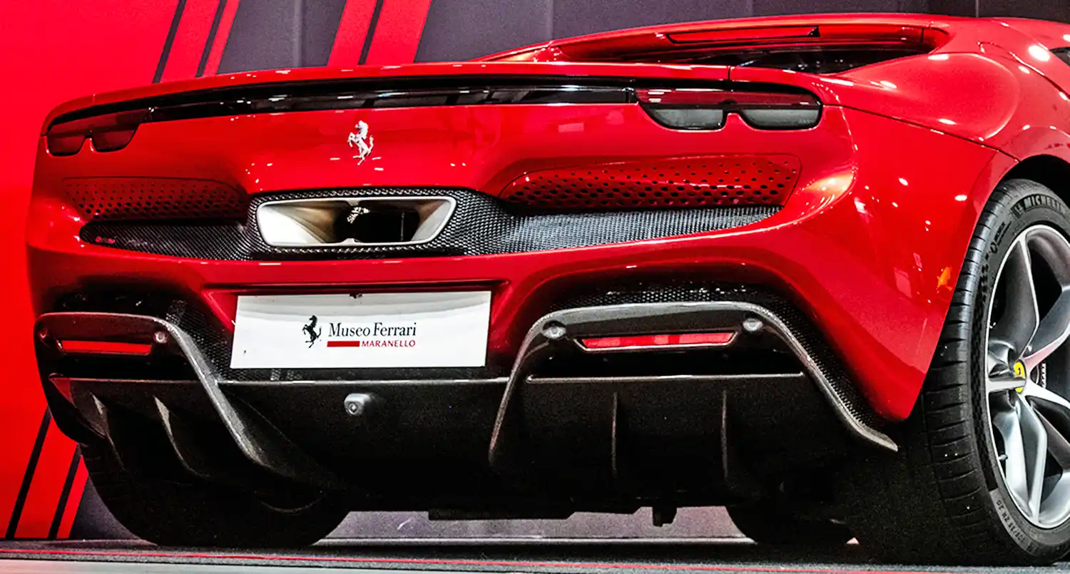 The styling of the tail hails an unequivocal break from traditional Ferrari coupé design by adopting an architecture that creates a spider-like discontinuity between roof and rear engine cover. This choice makes the Ferrari 296 GTB both unique and instantly recognisable and, from an aerodynamic perspective, led to the addition of a new wing profile on the roof which extends into two side fins that hug the edges of the rear engine cover.