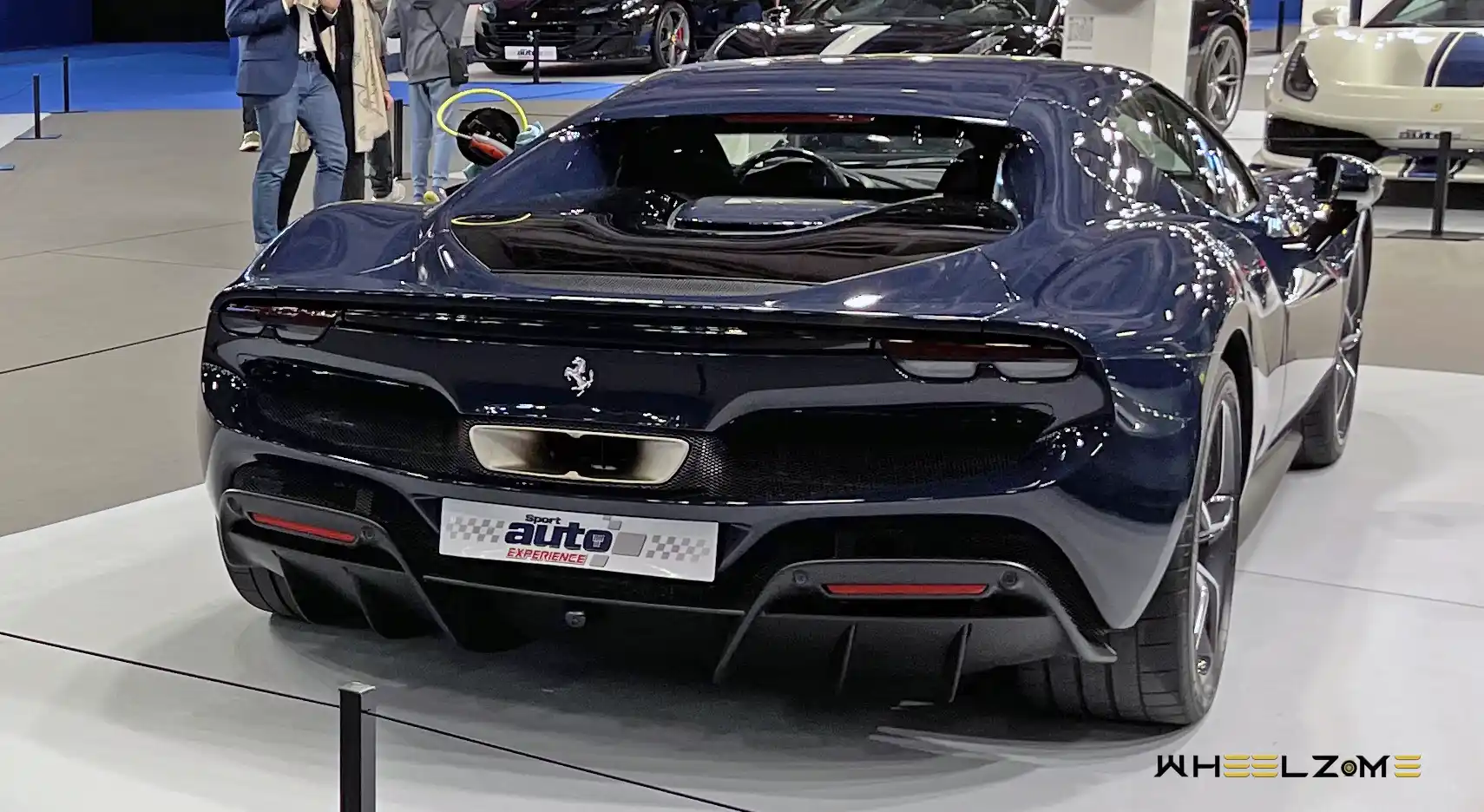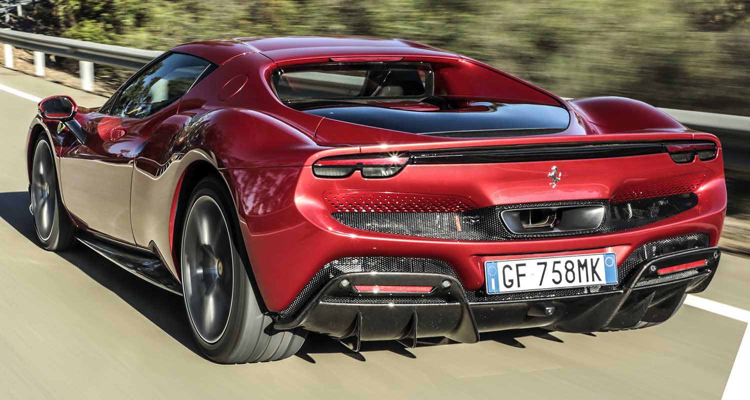 This is the first ever Ferrari with a rear-wheel drive-only PHEV (Plug-in Hybrid Electric Vehicle) architecture in which the ICE is integrated with a rear-mounted electric motor producing up to 122 kW (167 cv) derived from the Formula 1 application from which it also inherits the MGU-K (Motor Generator Unit, Kinetic) moniker. The electric motor and ICE communicate via the Transition Manager Actuator (TMA) which allows them to be used both together to produce a combined power output of 830 cv or decouples them to allow the electric motor to run solo.