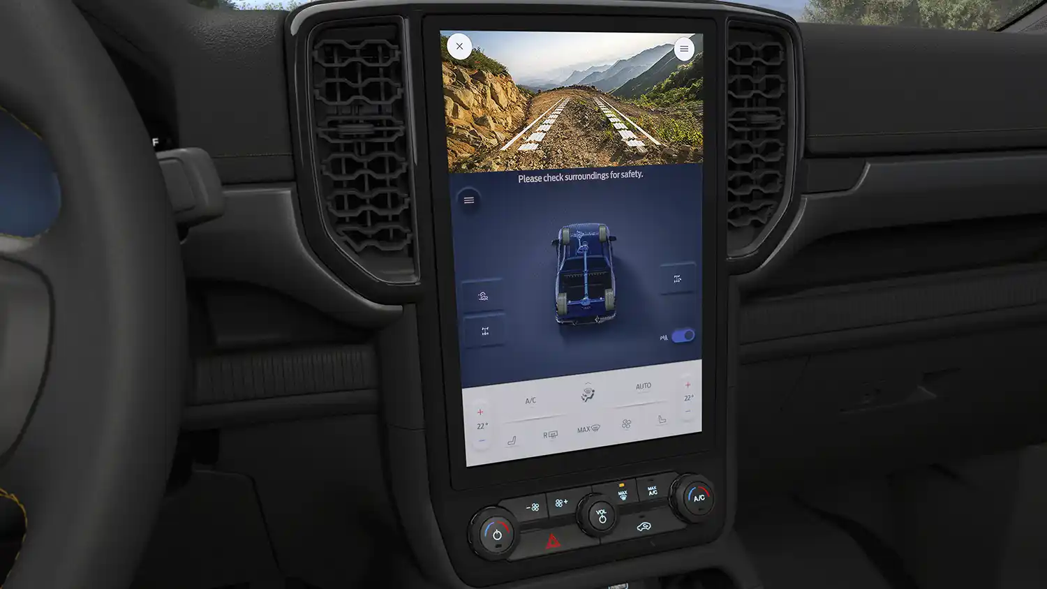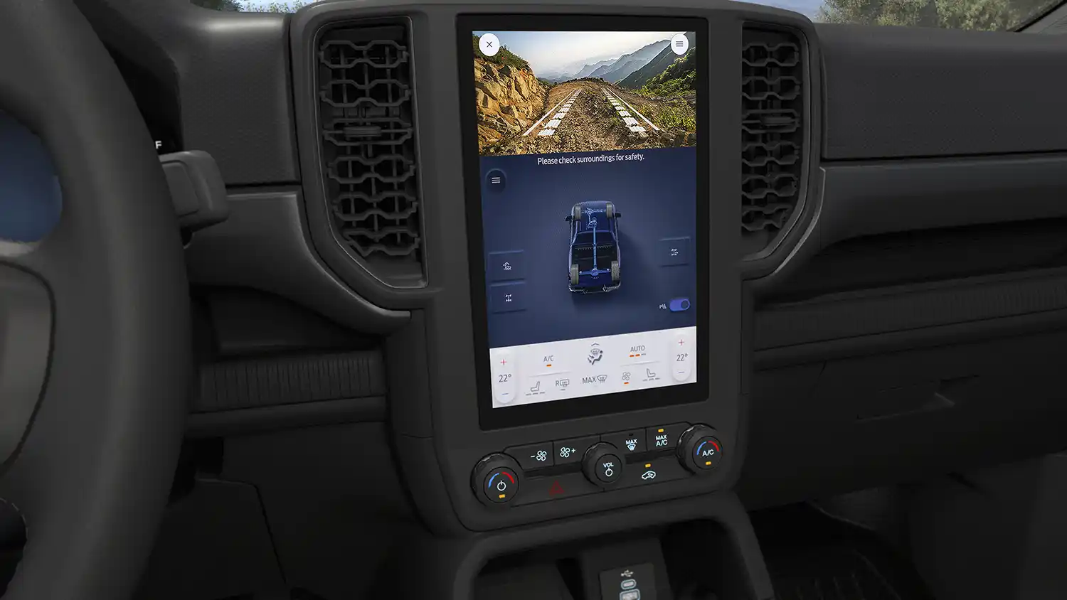 Standard new off-road technologies include Trail Turn Assist, 1 which uses brake-based torque vectoring to reduce turning radius by up to 25 per cent when tight turns are needed. Trail Control 1 operates in a similar way to cruise control: the driver can select a speed below 32 km/h and the vehicle will automatically manage acceleration and braking to maintain the selected speed while the driver concentrates on steering through difficult terrain. Rock Crawl mode – previously only available on Ranger Raptor – calibrates the throttle response, traction control and gearshift schedule for optimum slow-speed, controlled crossing of uneven and rocky terrain.