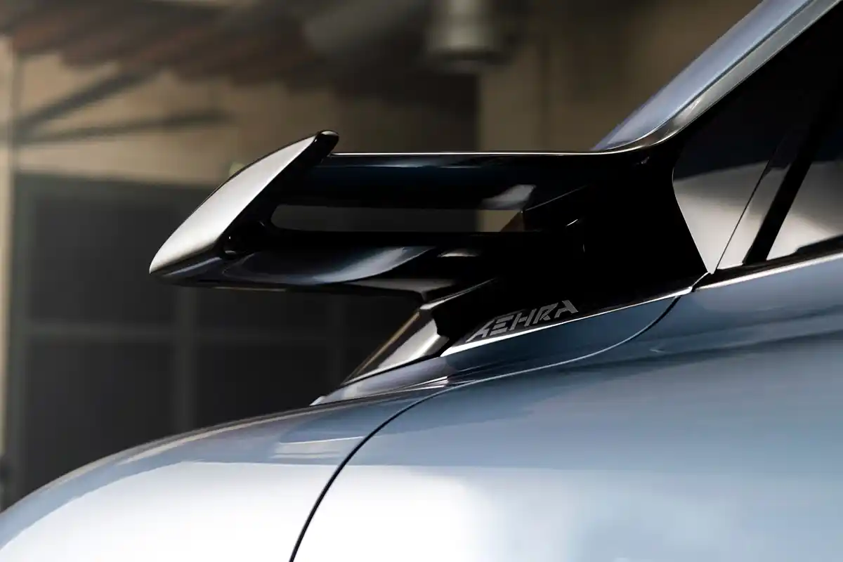 AEHRA has adopted innovative aerodynamic management, with movable elements at the front and rear, which offer the thrill and promise of a sporty ride and at the same time improve active safety. These solutions also optimise drag coefficient and thermal management of the batteries while also increasing the range of the car.