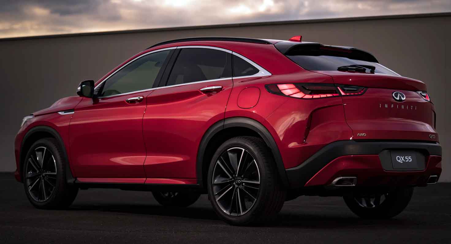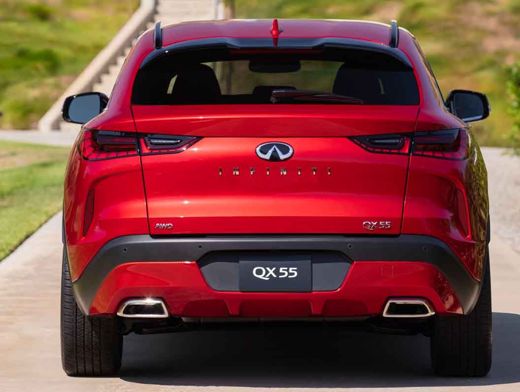 The elegant and flowing lines of this all-new model extend over the hood onto the front fenders and doors, and over the rear wheels. The QX55 rear accentuates the subtlety of the automaker’s design and interpretation of Japanese minimalism by coupling an uncluttered liftgate with handsome, understated technology to deliver a lasting impression.