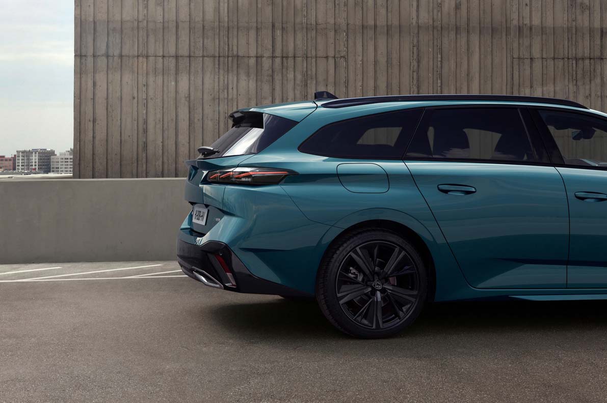 The rear end features the ultra-thin full LED lights of the saloon, but without the black strip that links them on the latter, the new PEUGEOT 308 SW is instead seeking to increase the amount of perceived bodywork, especially at the rear flap, to reflect its added volume and draw the eye to the extra space.