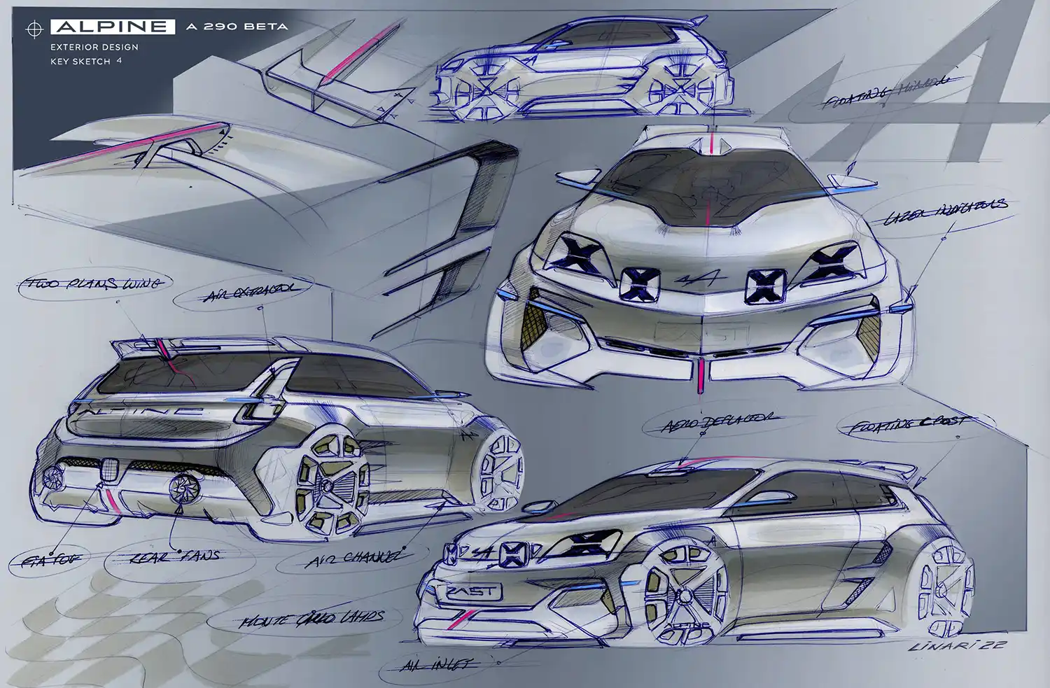 “The A290_β combines a racing soul with urban influences. It is designed for a new generation of hot-hatch enthusiasts. Its proportions and technical details instantly sweep you into a reinvented motor sport universe. To be true to Alpine’s driving-experience know-how, we placed the driver at the centre of the cockpit. The A290_β is designed – inside and outside – around this principle. As we go electric, this is one way of showing that we are attached to Alpine’s DNA and the spirit that is guiding us as we develop the Alpines for tomorrow.” Antony Villain, Design Director, Alpine