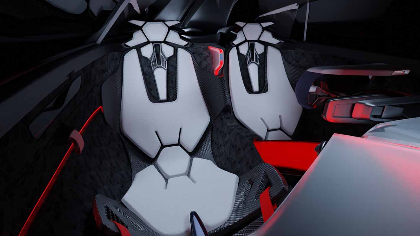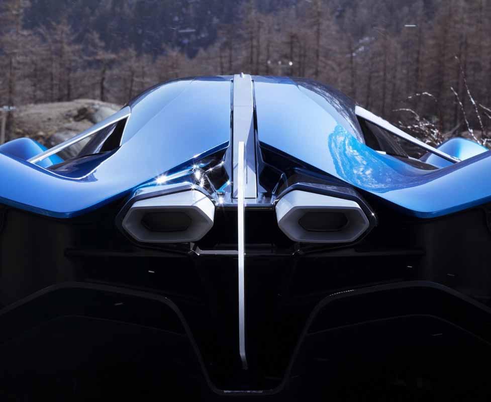 The French spirit has been skilfully preserved: while avoiding the pitfalls of unnecessary formal elements, designers focussed on the overlapping layers and sculptural aspects of the car’s silhouette. The bi-tone colours, matte black, and carbon fibre highlights create a bold contrast with each part of the car, making them stand out according to their function: aerodynamic, mechanical, or merely formal.