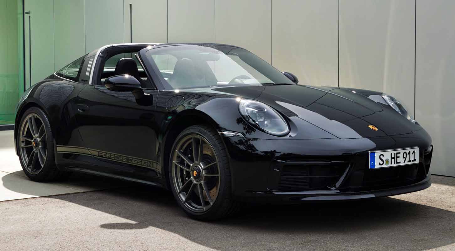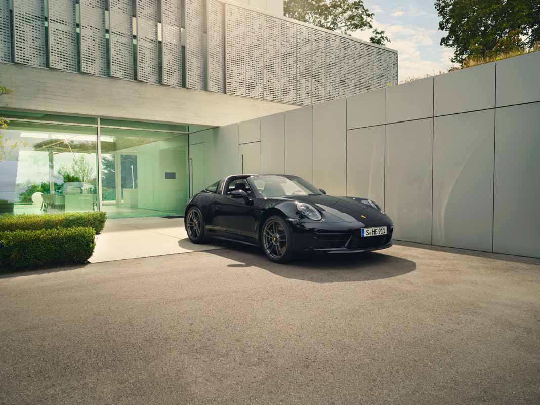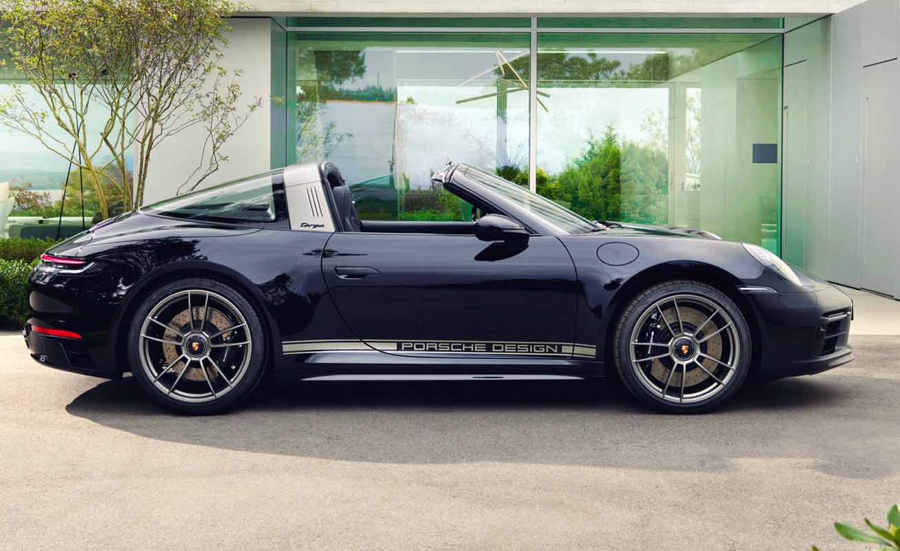 The 911 Edition 50Y Porsche Design is based on the 911 Targa 4 GTS with its six-cylinder boxer engine delivering 353 kW/480 PS. Strictly limited to 750 cars, it comes with numerous features inspired by the iconic designs of F.A. Porsche. In addition to the all-black exterior, the nods to the past include the classic checked Sport-Tex seat centre panels and the red second hand of the Porsche Design Subsecond clock in the Sport Chrono Package, which comes as standard.