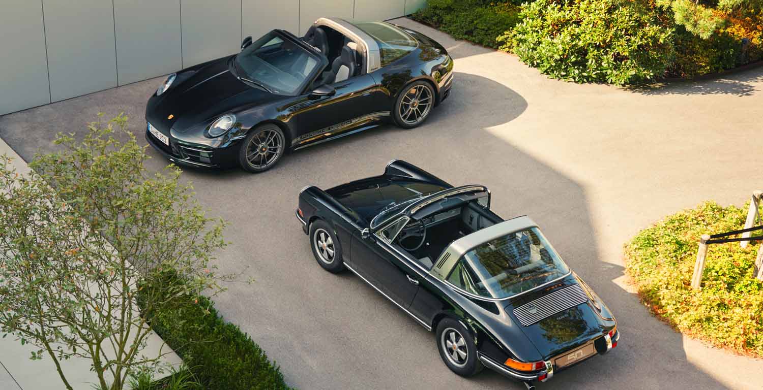 Porsche AG congratulates Porsche Design on its golden jubilee. Two very special cars are the highlights of the anniversary year: the exclusive Porsche 911 Edition 50Y Porsche Design and a historical 911 S 2.4 Targa from Porsche Design’s founding year of 1972, which has been faithfully restored by Porsche Classic. What unites them is the colour scheme, which, in recalling the legendary Chronograph I designed by Professor Ferdinand Alexander Porsche in 1972, sees both the exterior and the interior dominated by the colour black. Alongside them, Porsche Design is also presenting the Chronograph 1 – 1972 Limited Edition.
