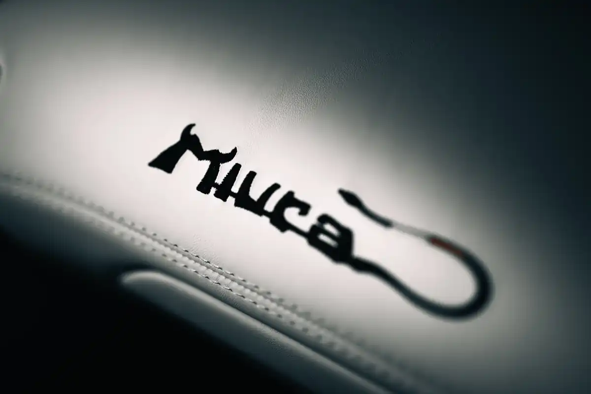 Inside, the Aventador Ultimae is as exclusive as the Miura Roadster. The leather seat style, and the trim throughout including dashboard and center console are inspired by the Miura Roadster, finished in Bianco Leda leather with complementary Nero Aldebaran around the headrests. A minimalist dashboard in Nero Ade Alcantara with Bianco Leda stitching sports a unique embroidered Miura badge, with the same Miura badge applied to the side rocker denoting the inspiration for this Aventador Ultimae.