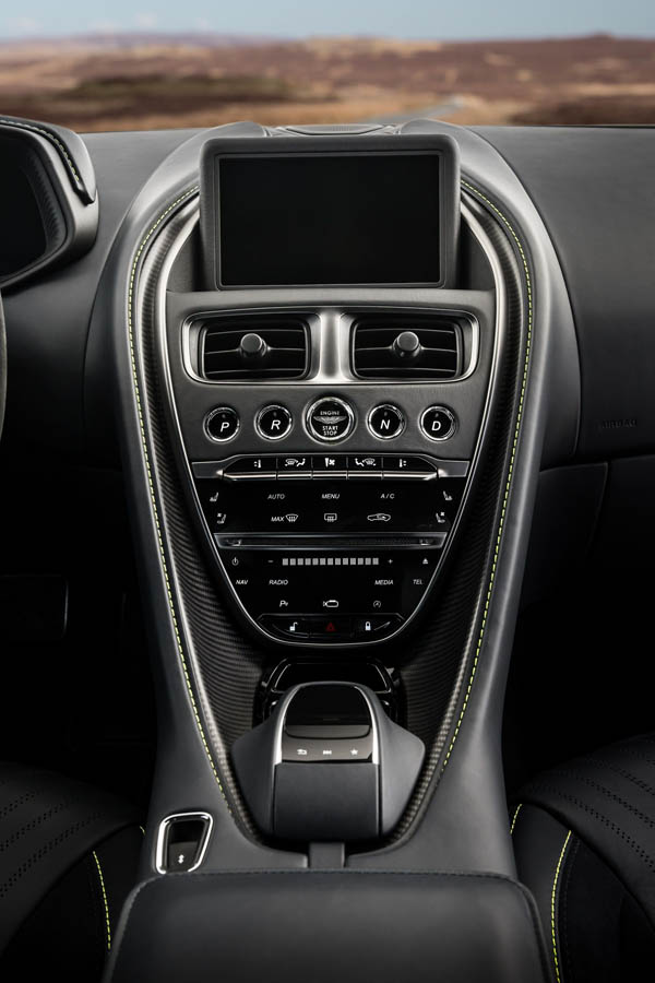 In addition to the extensive choice of standard colour and trim options, the Aston Martin DB11 AMR is available in three Designer Specifications, plus an exclusive AMR Signature Edition, which carries a striking Stirling Green and lime livery. With extensive carbon fibre detailing on the exterior, the inside is equally striking, with Dark Knight leather and Lime detailing, plus Satin Dark Chrome switchgear and Satin Carbon Fibre trim. Strictly limited to 100 units worldwide, the AMR Signature Edition is priced at £201,995.