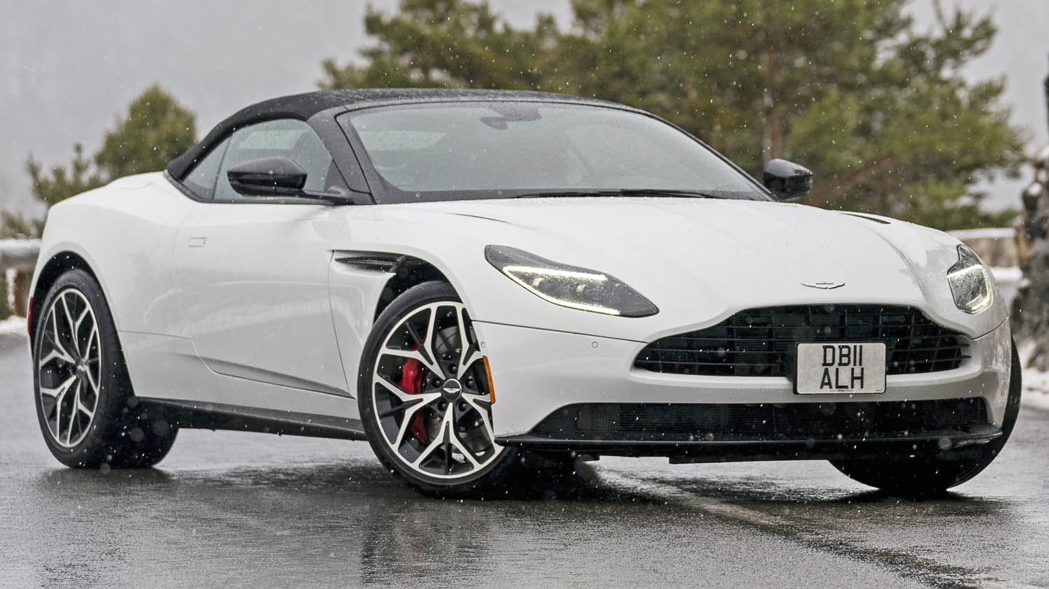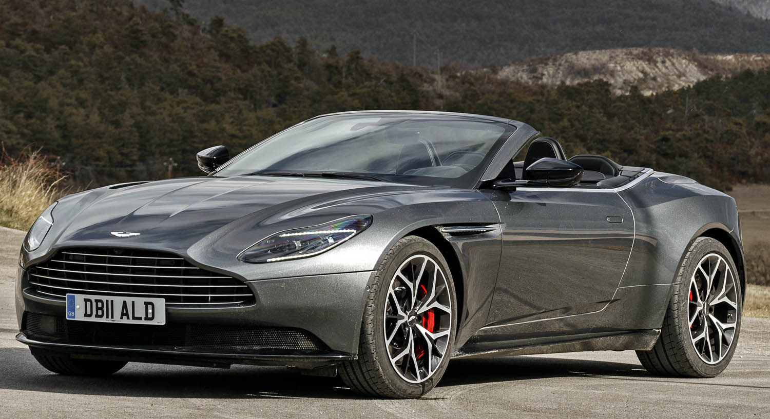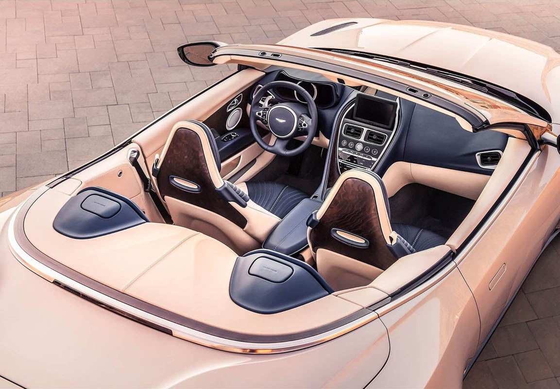 Visually the Aston Martin DB11 Volante features the striking single-piece aluminium bonnet and innovative ‘Curlicue’ aerodynamic feature from the DB11 Coupe, combined with new wood or carbon fibre veneer panels on the seat backs, a beautifully tailored fabric hood – available in a choice of bordeaux red, black silver or grey silver – dramatic ultra-slim ‘light blade’ tail lights that create a bold C graphic and a striking new design of forged alloy wheel. The end result is a breathtakingly sleek and athletic form that perfectly expresses the Aston Martin DB11 Volante’s character.