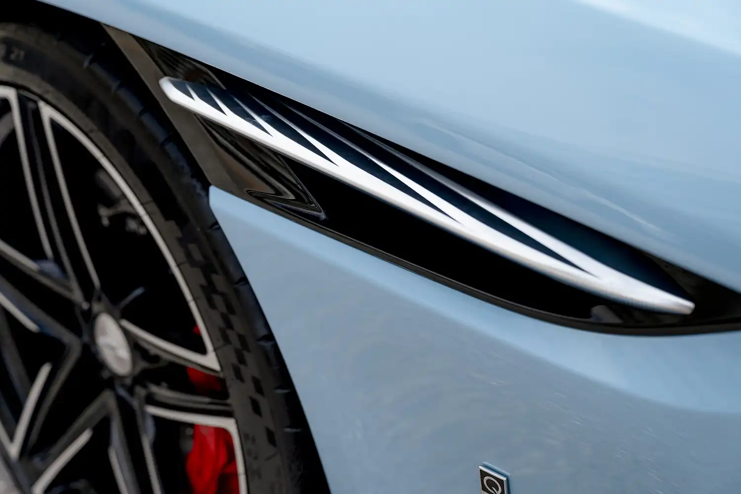 The Palm Beach Edition DB12 Volante pays tribute to oceanic blue. It features an exclusive Q by Aston Martin Frosted Glass Blue exterior paint. This unique color exhibits special qualities. Glass flakes within the topcoat create its mesmerizing shimmer.