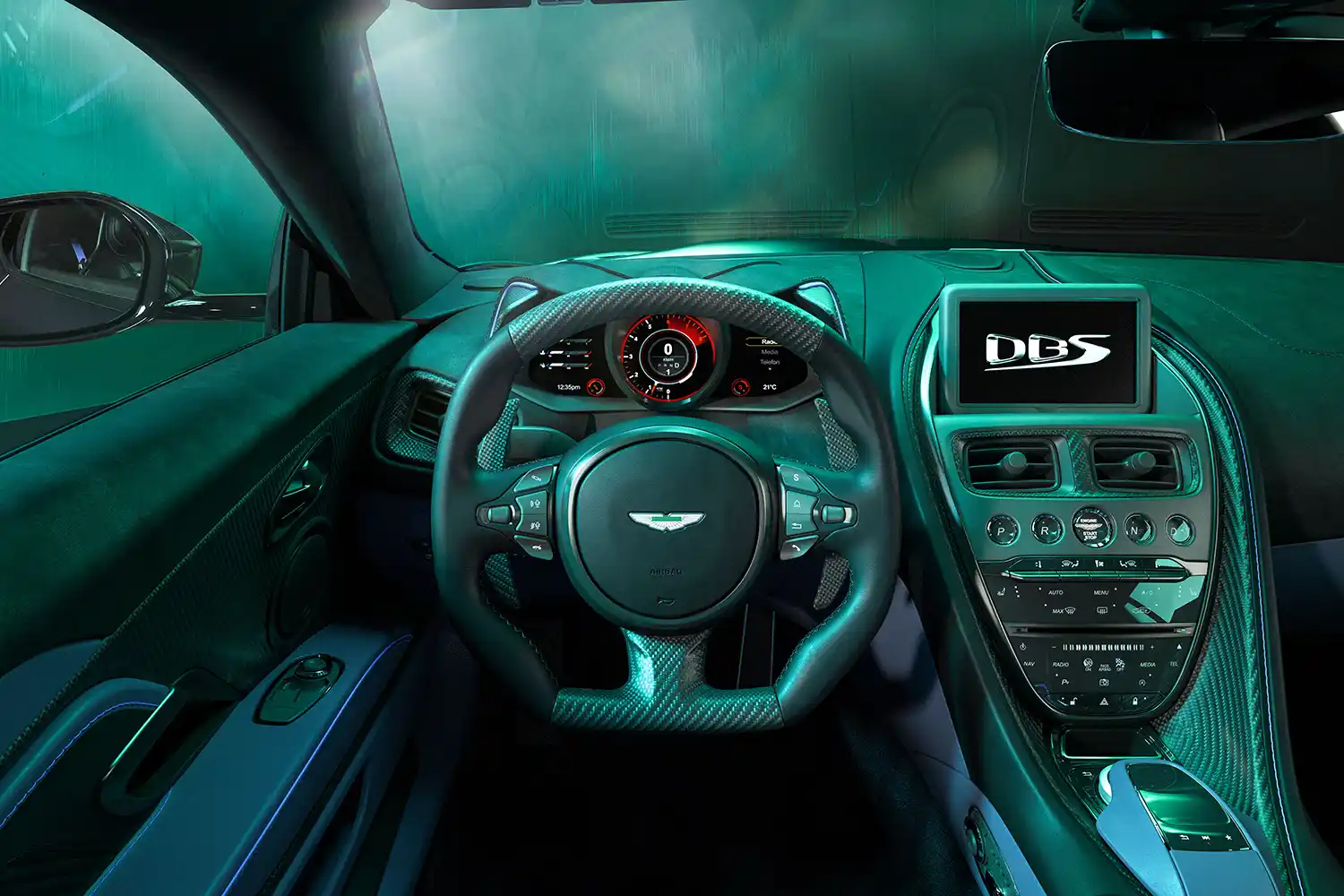 Like all Aston Martins, the scope for true one-of-a-kind personal specification is virtually limitless. A diverse range of Q by Aston Martin bespoke options are available on DBS 770 Ultimate, including Q liveries with assorted graphics options, painted wheels to match body or graphics colours, tinted carbon fibre and woven leather seat inserts, trim inlays and a carbon fibre steering wheel.