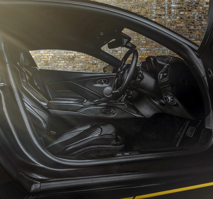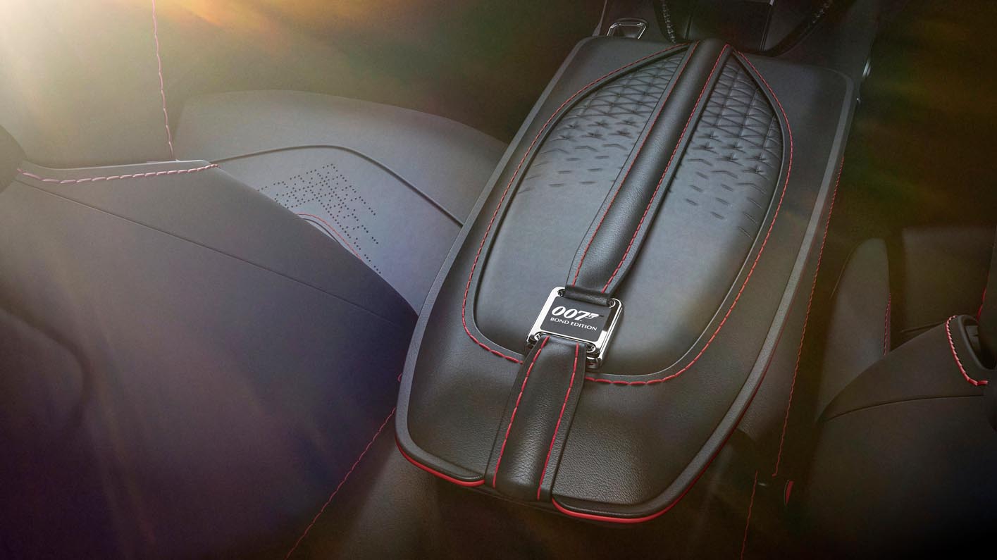 The seats themselves feature unique heritage fluting reminiscent of that seen in the V8, along with carbon fibre seat backs and, in a particularly detailed nod to the 1980s film, the outline of cello ‘f holes’ inspired by the memorable cello chase scene featuring James Bond (Timothy Dalton) and Kara Milovy (Maryam D’Abo).
