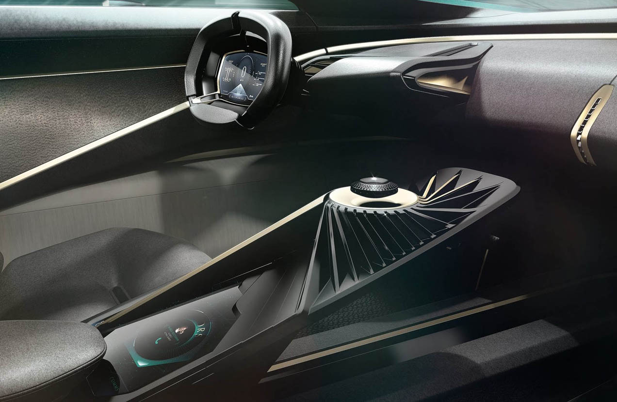 Overall there is a darker, more nocturnal treatment to the colour and trim choices. When considering the materials and mood of the cabin, the intention was that it should feel like a seamless transition between the vehicle and the owner’s home. ‘We imagined that the owner would be a sort of pioneering yet environmentally conscious person’ said Aston Martin EVP and Chief Creative Officer, Marek Reichman. ‘They may well have a luxury villa in a remote place that acts as their sanctuary. As such, the Lagonda brand is unconstrained by the traditional values of current luxury products, it is not about wood and leather, we tried to design the interior to feel very calm and quiet with soft, natural materials like Cashmere. Lagonda reflects a future that is full of unique materials that are not set in the past.’