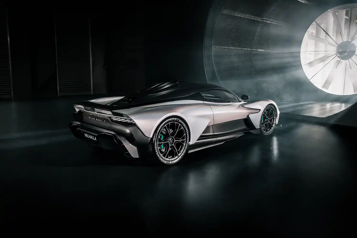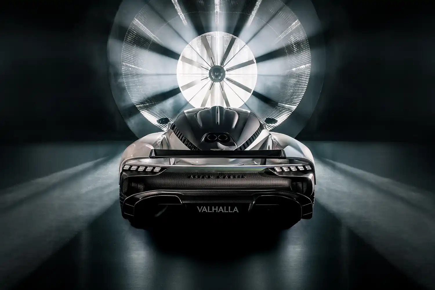 Like the AMR23 race car, Valhalla features-multi element wings front and rear, though the front wing is largely hidden from view. The front wing can lie flat in a DRS position to reduce drag or can be angled up to generate huge downforce directly ahead of the front wheels. Behind the front splitter the under-floor surface is concave, creating a low-pressure area that generates downforce. Again, this feature can be controlled as part of the full vehicle active control algorithms on the car.