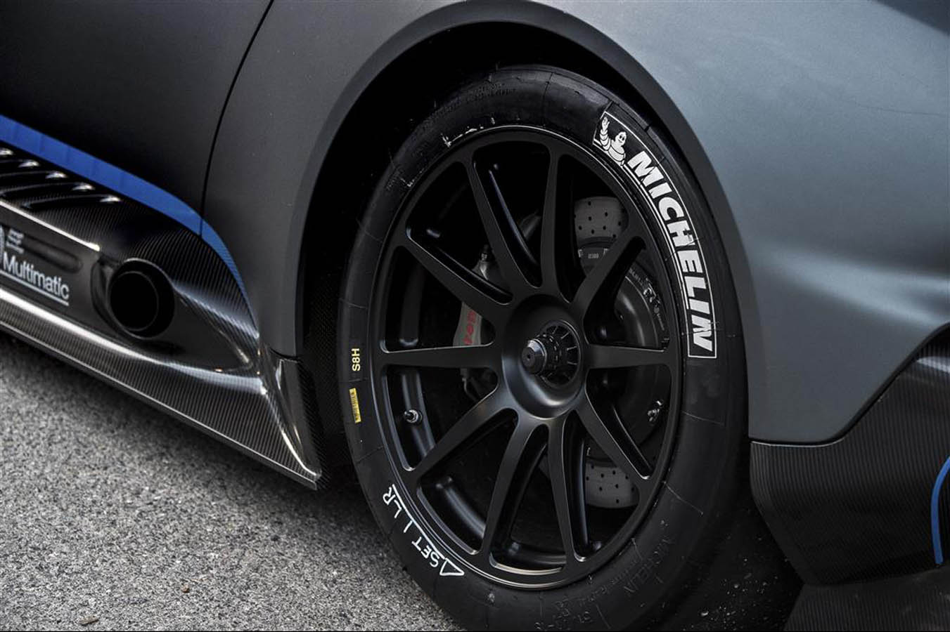 Comprising cutting edge engineering including that sourced from the brand’s successful GT racing campaign, the car features a carbon fibre monocoque and body constructed by Aston Martin’s long-term specialist body engineering and manufacturing partner Multimatic, integral limited-slip differential, magnesium torque tube with carbon fibre propeller shaft and Brembo racing calipers acting on carbon ceramic racing disc brakes which measure 380mm in diameter at the front and 360mm at the rear.