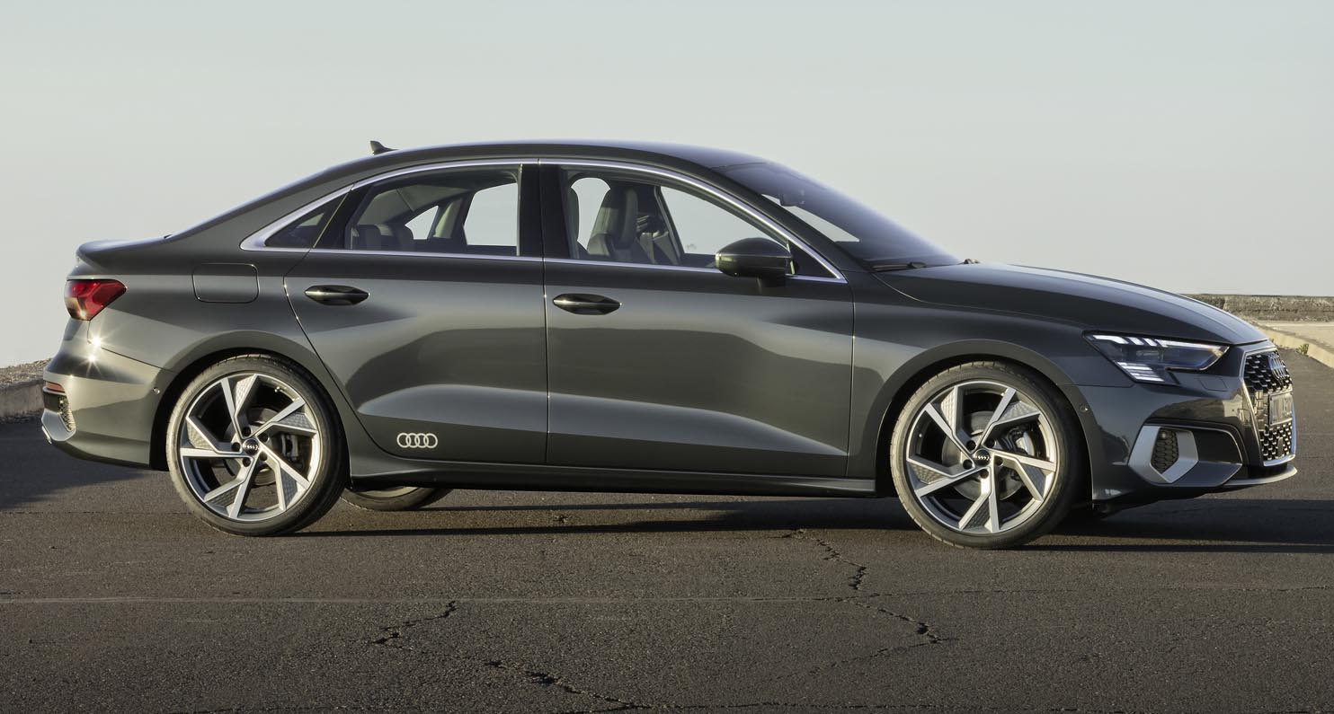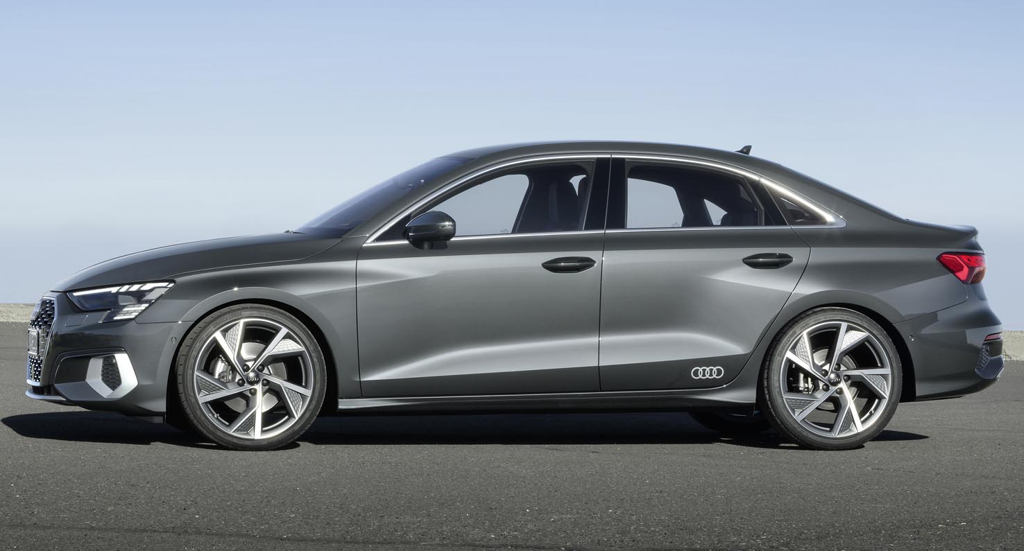 Besides the cylinder on demand technology, the powertrain in conjunction with the S tronic dual-clutch transmission uses a 48-volt mild hybrid system. It recovers energy during deceleration, supports the engine with up to 50 Nm (36.9 lb-ft) of torque when driving off and accelerating from low engine speeds and allows the A3 Sedan to coast with the engine switched off in many situations. In everyday driving, it reduces consumption by up to 0.4 liters (0.1 US gal) per 100 kilometers (62.1 mi).