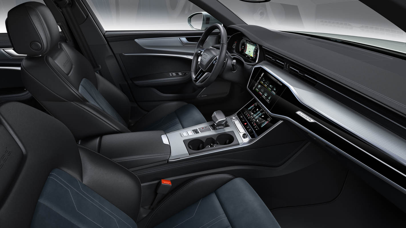 As an alternative to the standard seats, which can be equipped with seat heating and ventilation, Audi also supplies sport seats. Top-of-the-line equipment comes in the shape of the electrically adjustable customized contour seats, which can be supplemented with a massage function. Optional equipment further boosts comfort: The air quality package adds subtle fragrances to the interior and includes an ionizer. The panoramic glass sunroof brings light and fresh air into the car. In the dark, the contour ambient lighting package floods the interior in a special look.