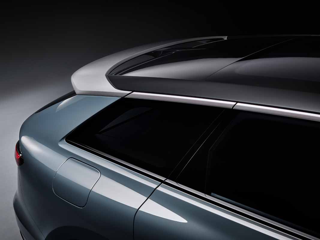 The influence of the wind tunnel on the rear end is unmistakable. The upper rear end is shaped to create an aerodynamically functional and circumferential breakaway edge. The rear spoiler with coloured trim visually emphasizes the elongated, horizontally oriented silhouette of the A6 Avant e-tron concept. It also does important work with airflow to improve aerodynamics.