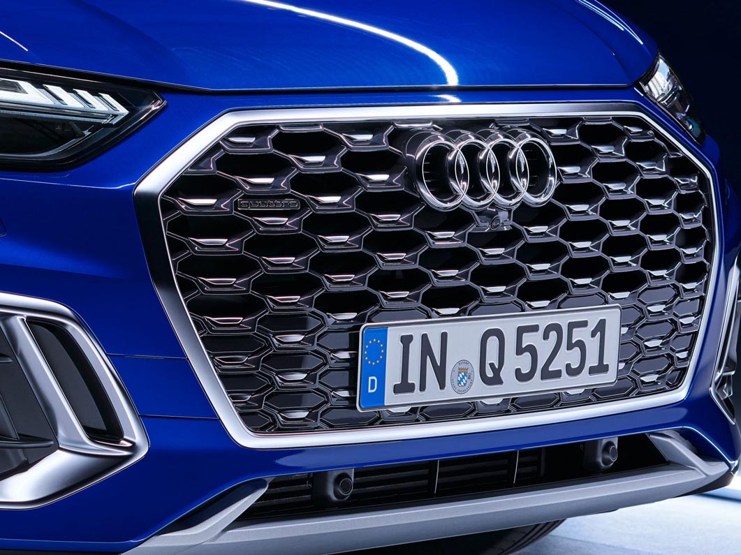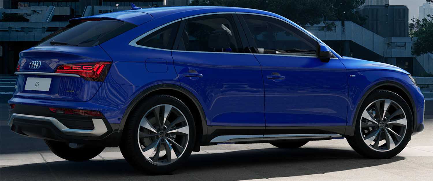 These features are also present within the all-new Audi Q5 Sportback, which boasts a confident design attributed to the sporty coupé-like roof line and wide, flat sloping rear. An aerodynamic appearance is achieved with the diffuser’s horizontal trim, the long chrome strip that stretches across the entire vehicle. A roof edge spoiler and S line equipment line accents are available add-ons, giving the model a sportier look.