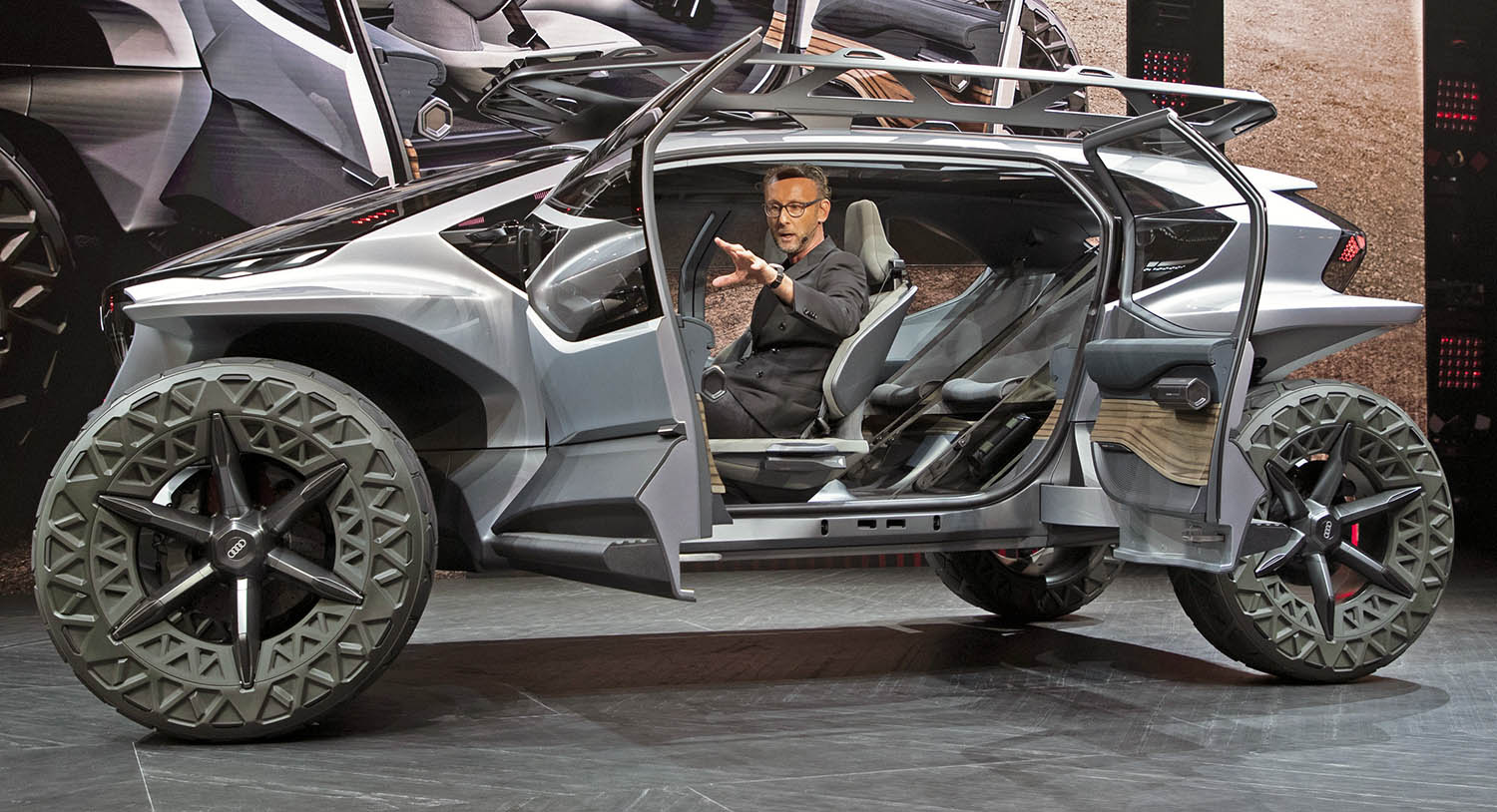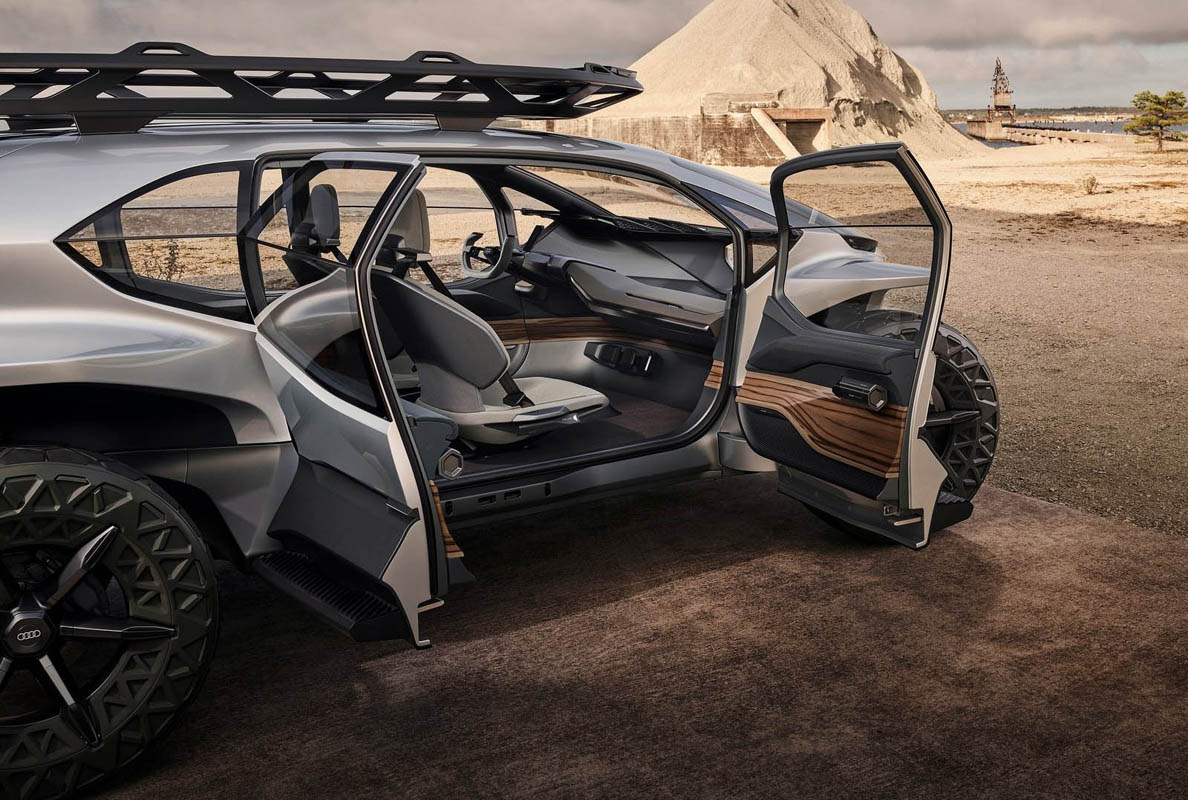 The “Trail” part of the name evokes the idea of exploring nature. That is why there are no big screens on board for streaming TV series or videoconferencing; instead, broad glass surfaces provide a clear view of the surroundings. This is how Marc Lichte, Audi’s Head of Design, describes the use case: “With the AI:TRAIL, we are showing an off-road concept with an emissions-free electric drive for an innovative driving experience away from paved roads. Consistent with this, we designed a monolithic basic vehicle body with maximum glazing to create an intense connection to the surroundings. A concept for sustainable mobility on demand.”