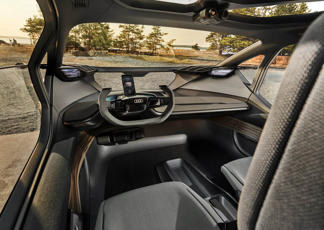 The cabin itself is an extensively glazed space surrounded by polygonal shapes, with room for up to four people. One characteristic feature-and one that indicates the vehicle’s kinship with Aicon and AI:ME-is the protruding ridge halfway up the side windows. This line continues to both the front and rear and acts as a waistline uniting the entire body in one monolithic whole. With the electric drive system arranged around the axles and the battery in the floor, there is no need for overhanging sections or separate attachments for the motor or batteries. Something else that the four visionary Audi vehicles at IAA 2019 will be demonstrating is that the one-box design is becoming the gold standard for the age of the electric vehicle.