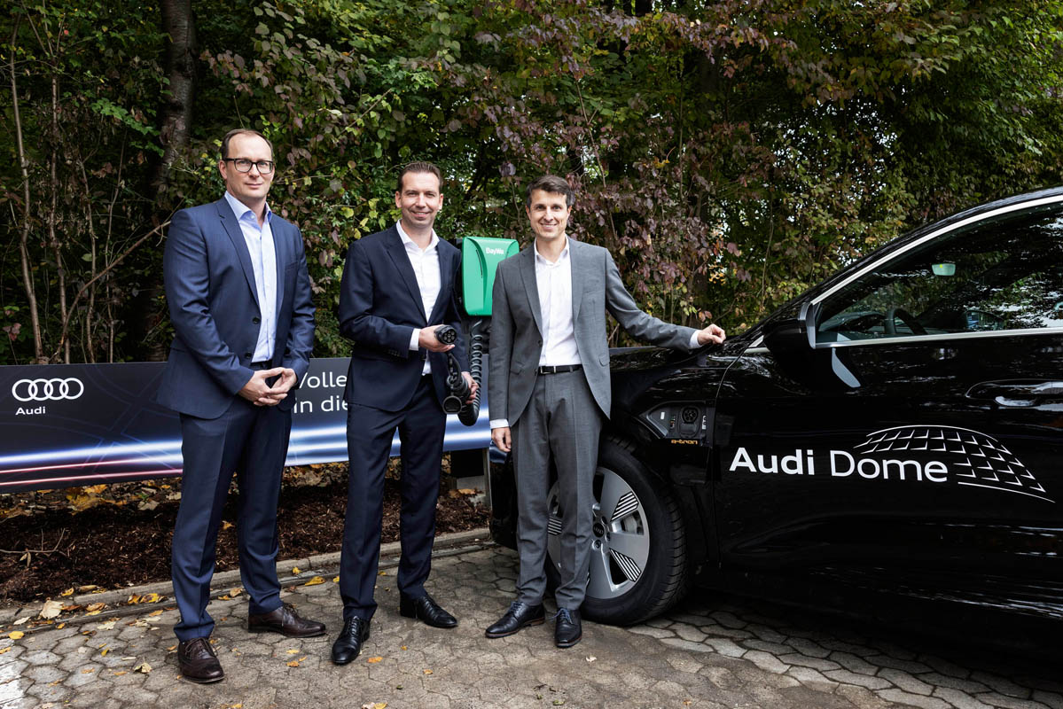Alongside Principal Partner Audi, Munich-based retail, logistics and services group BayWa is the main sponsor of FC Bayern Basketball. Together with the team, the two partners put the new charging infrastructure at the Audi Dome into operation. This was installed by BayWa Mobility Solutions, a wholly-owned subsidiary of BayWa. The infrastructure includes four AC wall boxes each with two charging points at the VIP parking spaces and a total of ten AC wall boxes each with two charging points each at the players’ parking spaces. An additional fast-charging station with two charging points at the VIP parking spaces will follow in mid-November.