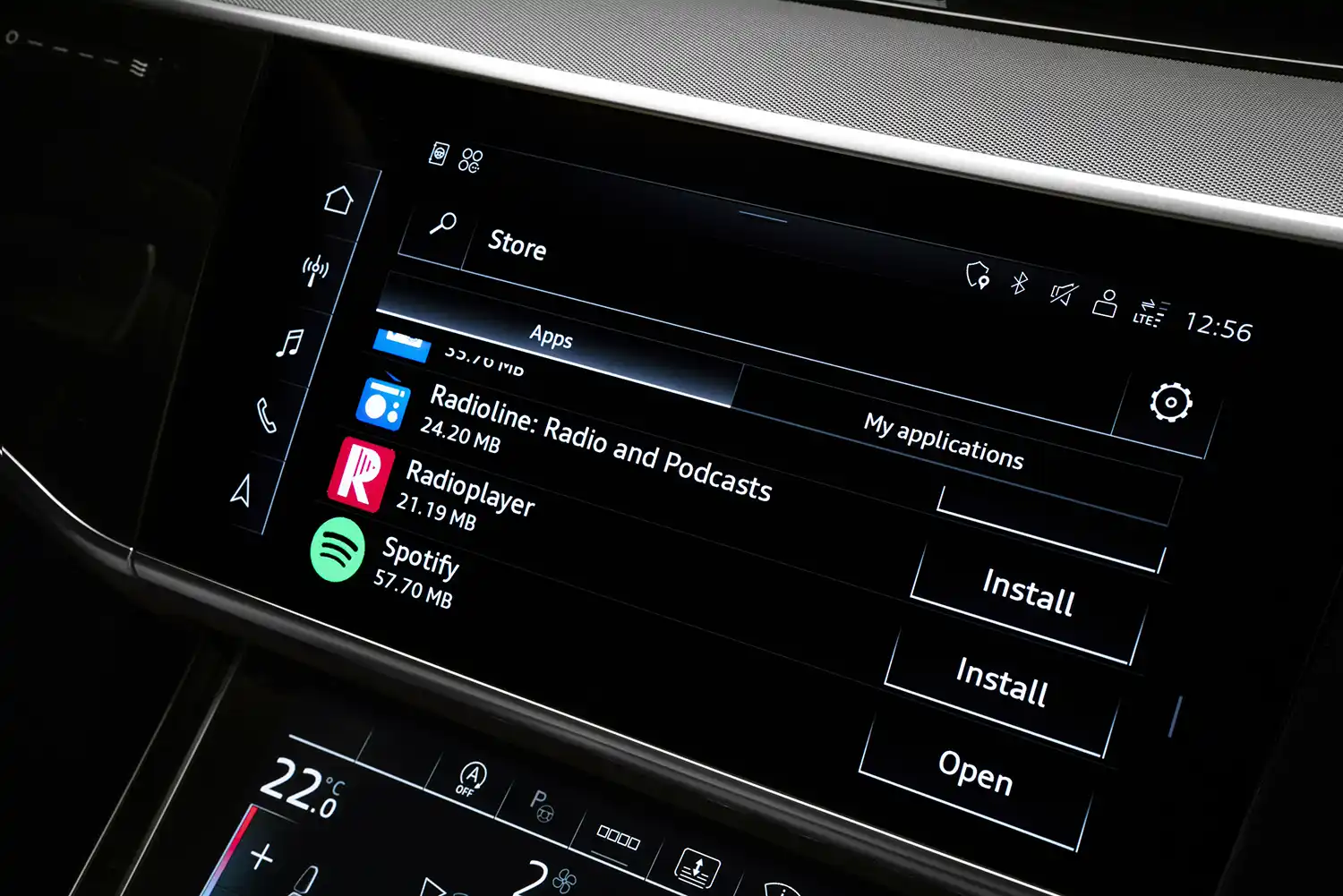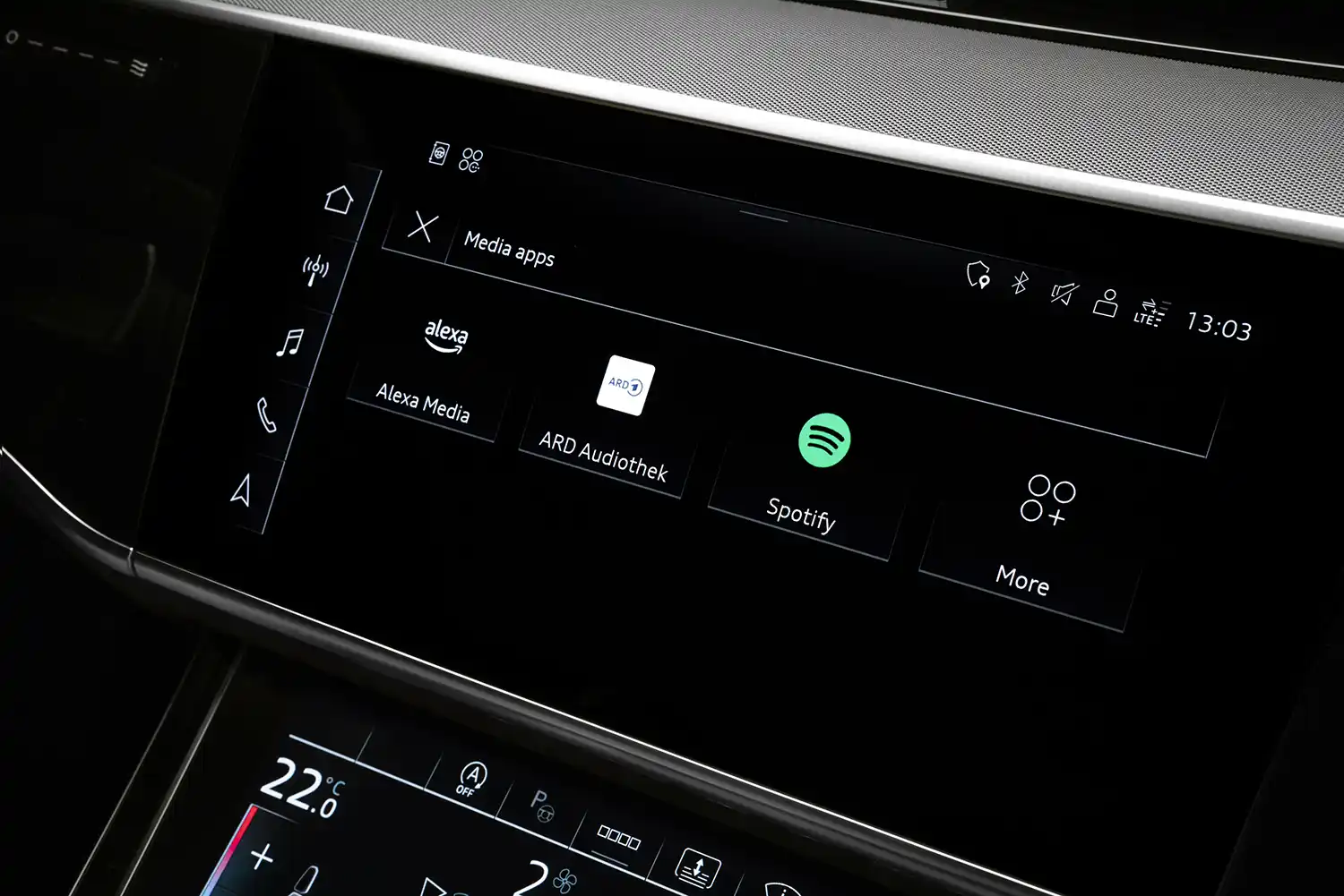 With the new store, customers gain access to a wide variety of apps, which can be downloaded directly and independently from the smartphone to the MMI. At launch, apps from the following categories are available: Music, Video, Gaming, Navigation, Parking & Charging, Productivity, Weather, and News. The Music section, for example, includes apps such as Amazon Music and Spotify. The store will constantly grow with new apps being added all the time. Customers can access it via a separate MMI tile. Afterwards, the additional apps are seamlessly implemented in the MMI and can be used safely and reliably even while driving. The app portfolio is adapted specifically to the various markets.