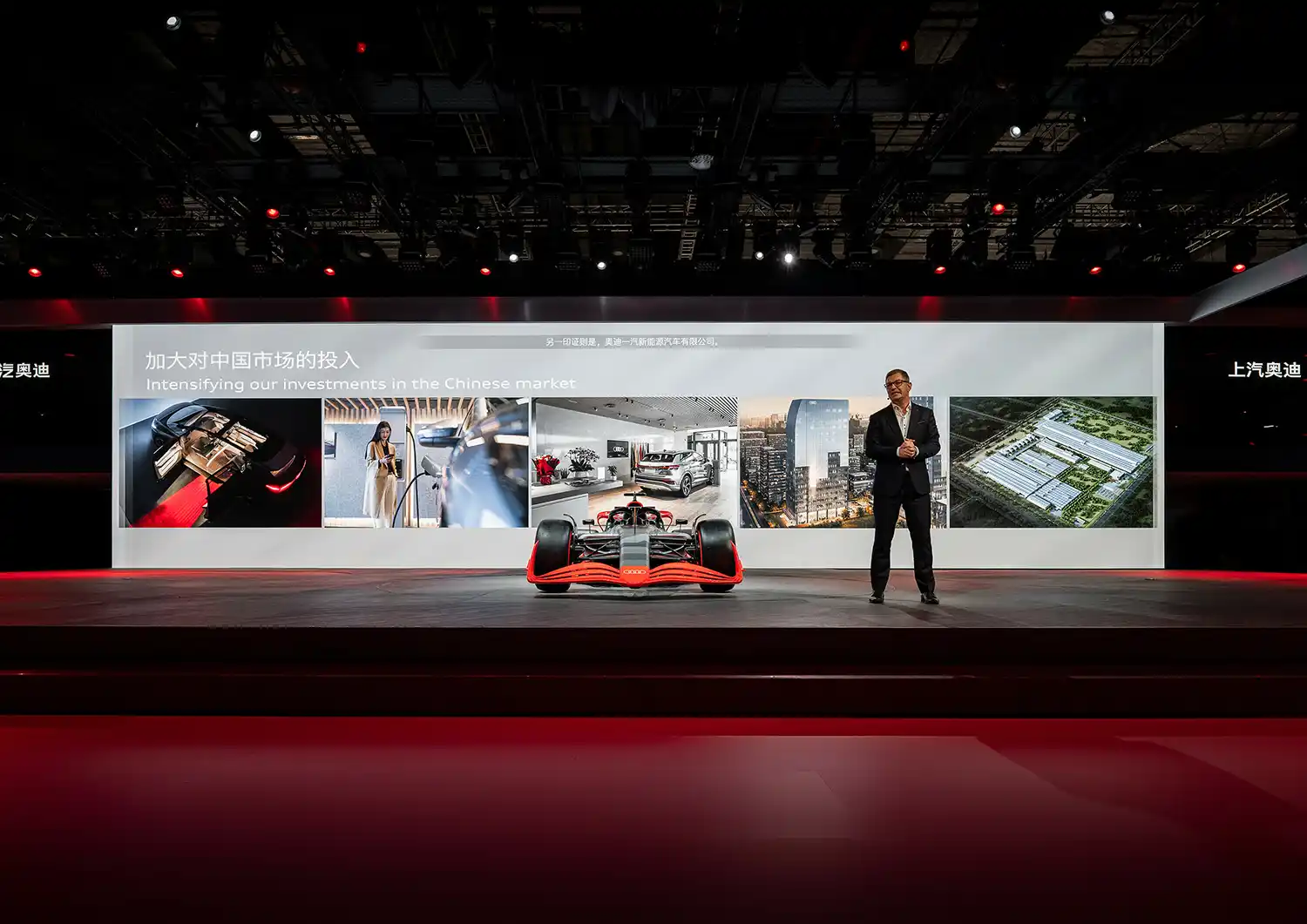 Audi is presenting its Formula 1 project in China for the first time from April 18 to 27: The F1 show car with the striking Audi Launch Livery is a central element of the brand’s presence at Auto Shanghai. Audi CEO Markus Duesmann has provided insight into the current progress of the project during the press conference.