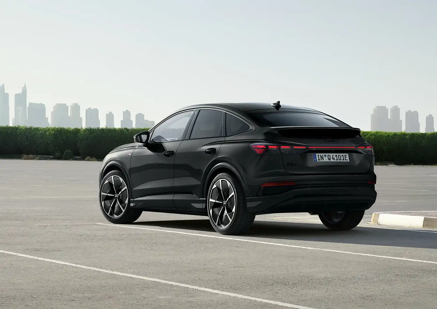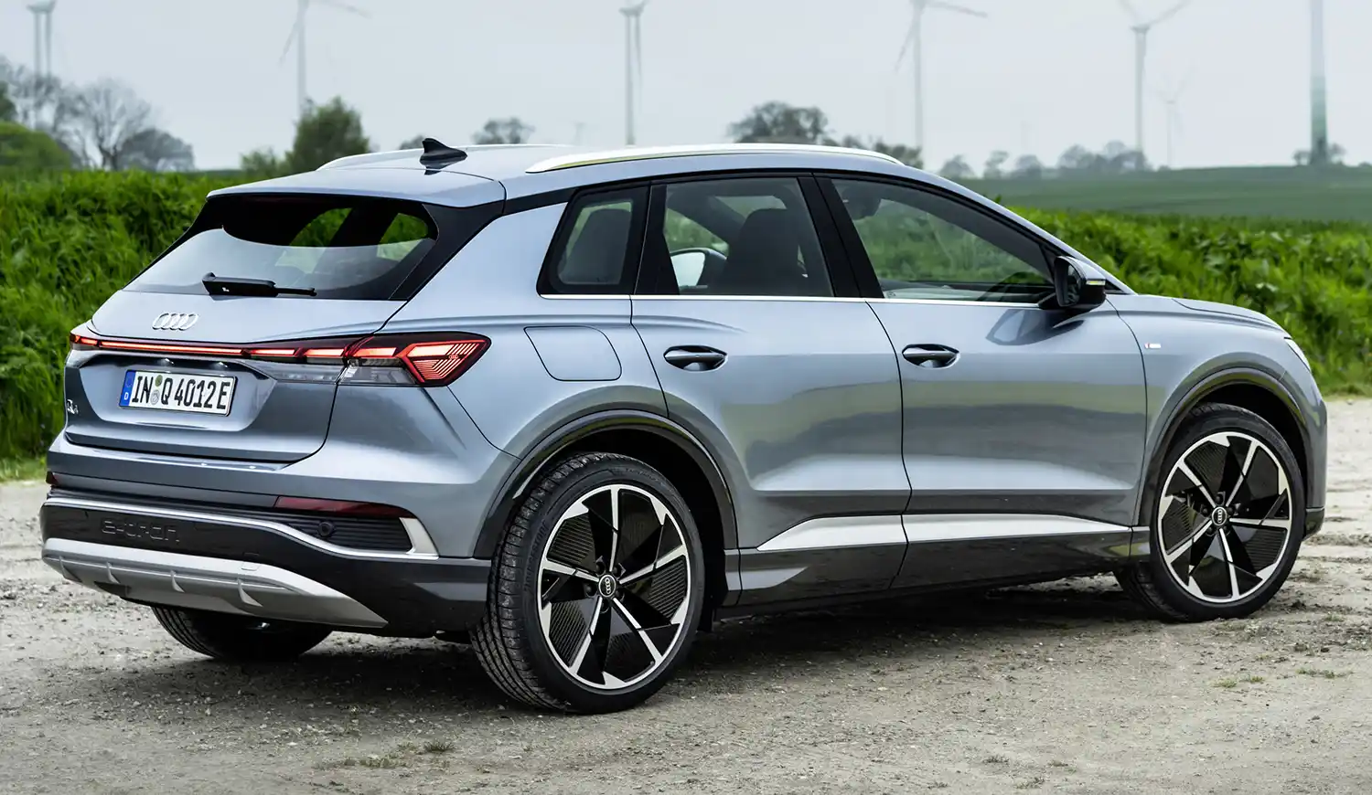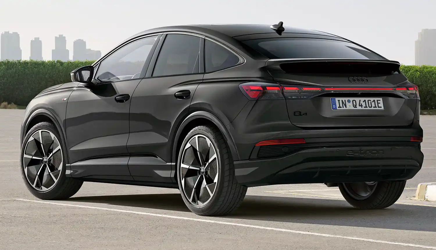 The Audi Q4 45 e-tron and the Audi Q4 Sportback 45 e-tron with rear-wheel drive produce 210 kW (286 PS) and accelerate from zero to 100 km/h (62 mph) in 6.7 seconds. The Audi Q4 45 e-tron quattro and the Audi Q4 Sportback 45 e-tron quattro with 210 kW (286 PS) take 6.6 seconds. The top-of-the-range models Audi Q4 55 e-tron quattro and Audi Q4 Sportback 55 e-tron quattro models with 250 kW (340 PS) accelerate from a standstill to highway speed in a mere 5.4 seconds. The top speed for all models is now 180 km/h (112 mph).