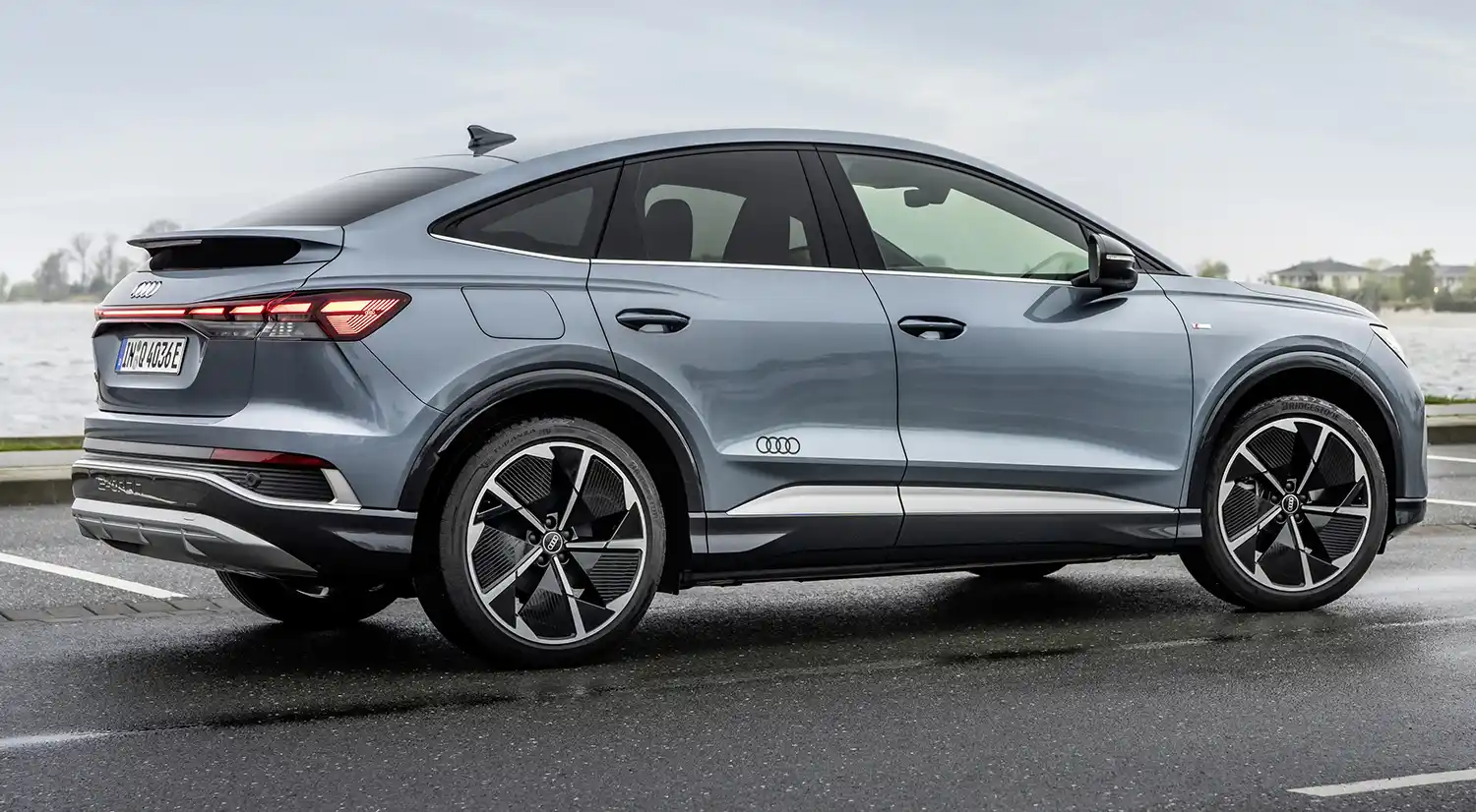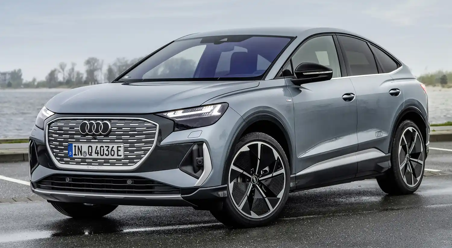 With the sport suspension, the body is 15 millimeters lower. The new spring/shock absorber tuning and the new steering tuning provide a balanced, solid driving experience and a sporty steering response typical of an Audi. The Audi Q4 e-tron models respond more directly to steering changes for greater sportiness and agility.