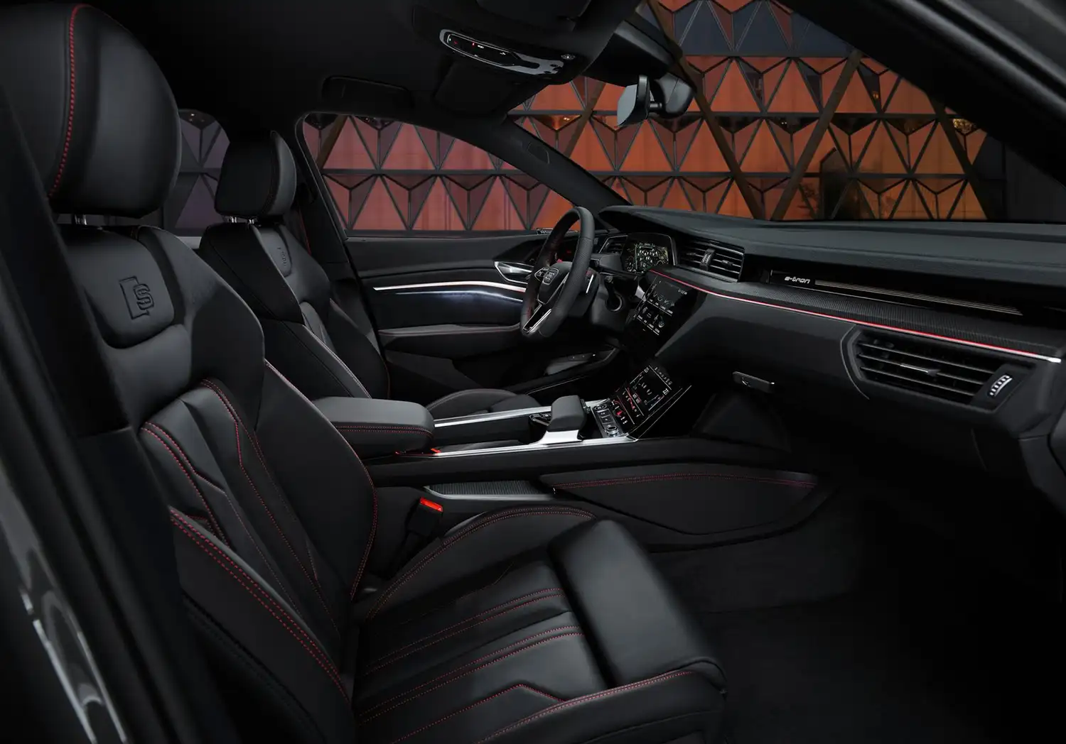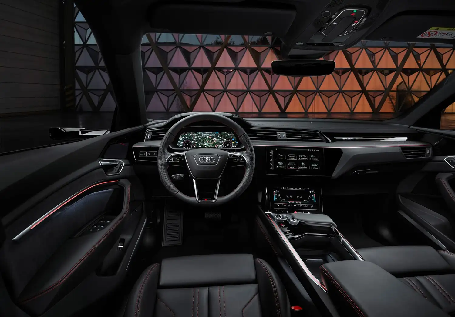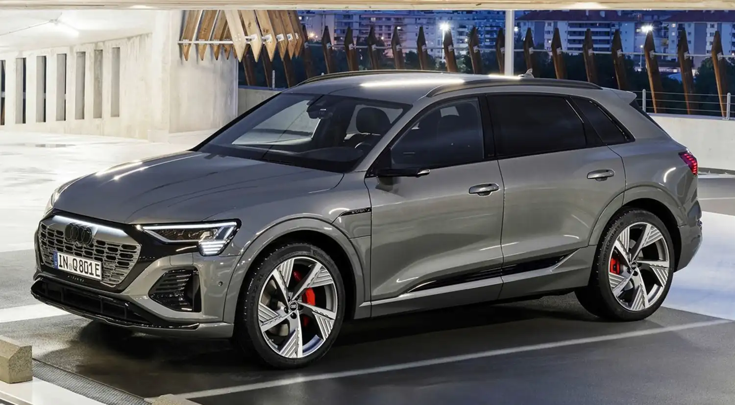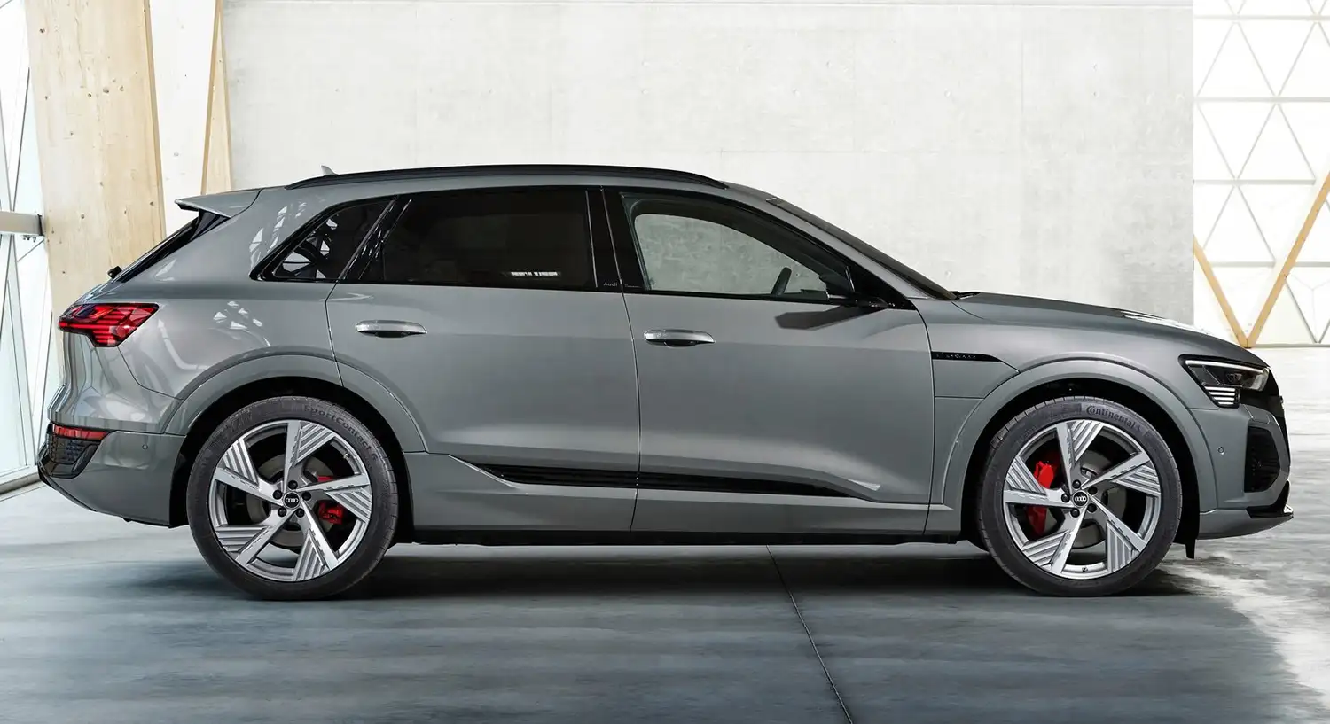 The Q8 e-tron quattro features a refreshed design that combines elegance with functionality. The new front and rear designs, including the Singleframe grille and inverted grille, emphasize its electric identity. Aerodynamic improvements, such as optimized wheel spoilers and a self-sealing system for the grille, reduce drag and enhance efficiency. The Q8 e-tron’s sleek profile and refined details make it a standout in the luxury SUV segment.