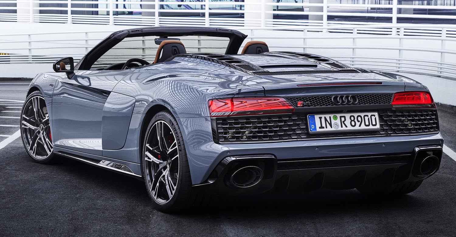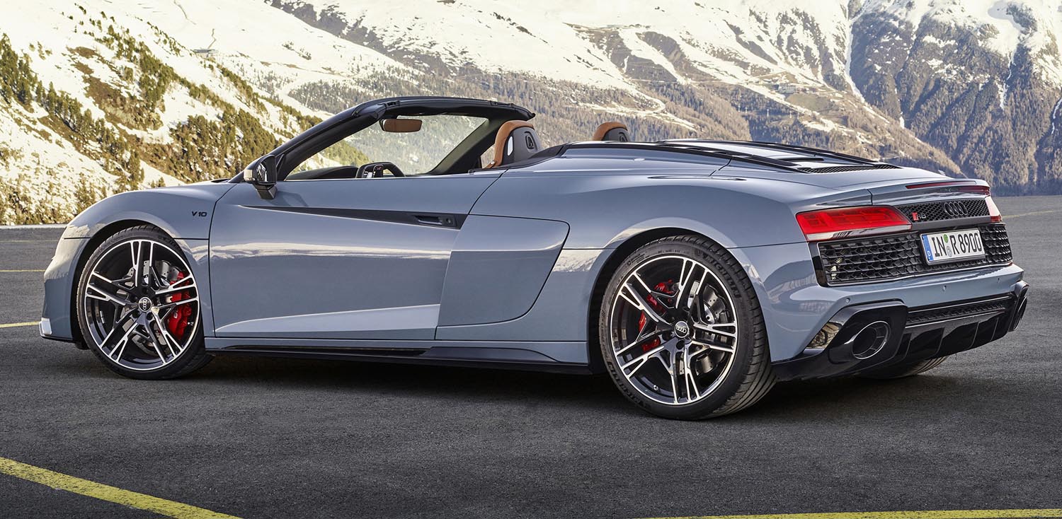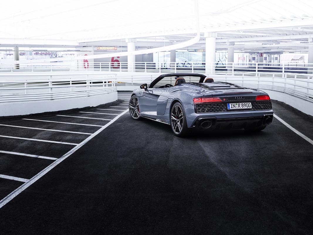 4. Audi Spyder R8 V10 performance quattro: Combined fuel consumption in l/100 km: 13.4 – 13.3 (17.6 – 17.7 US mpg); Combined CO2 emissions in g/km: 306 – 304 (492.5 – 489.2 g/mi)