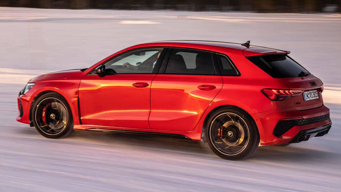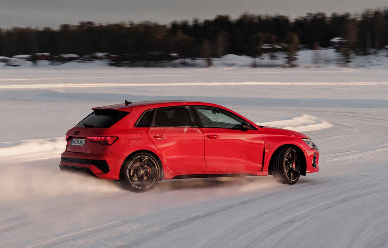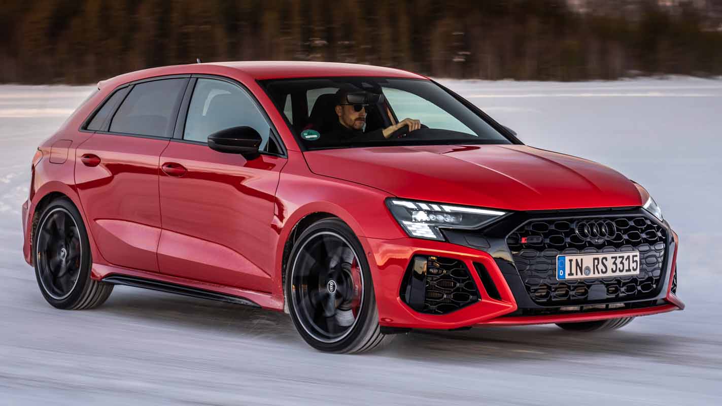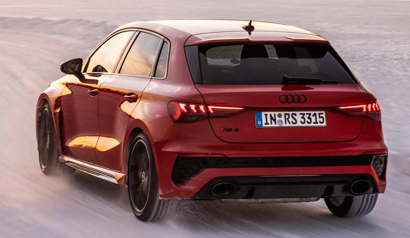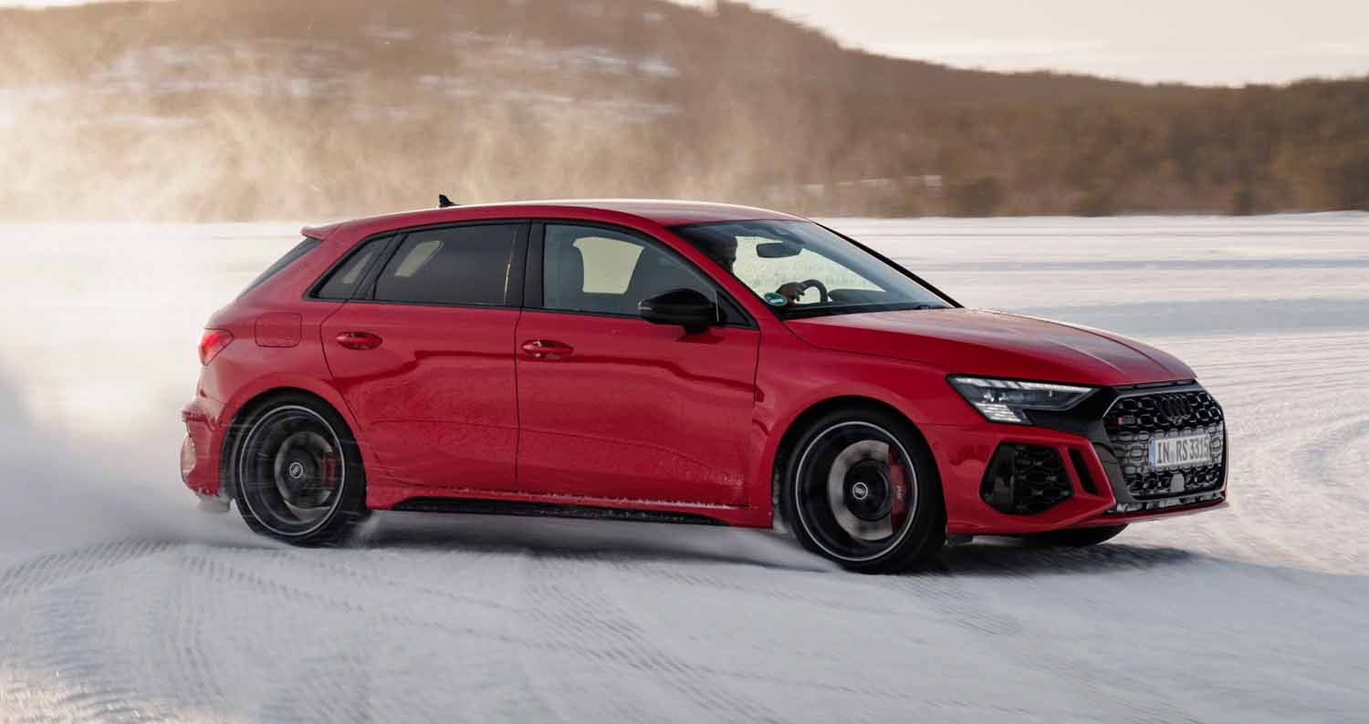 Drifting and sporty driving with lateral dynamics are a huge amount of fun – especially with the five-cylinder turbocharged engine developing 400 PS, plus ceramic brakes and RS sport suspension.