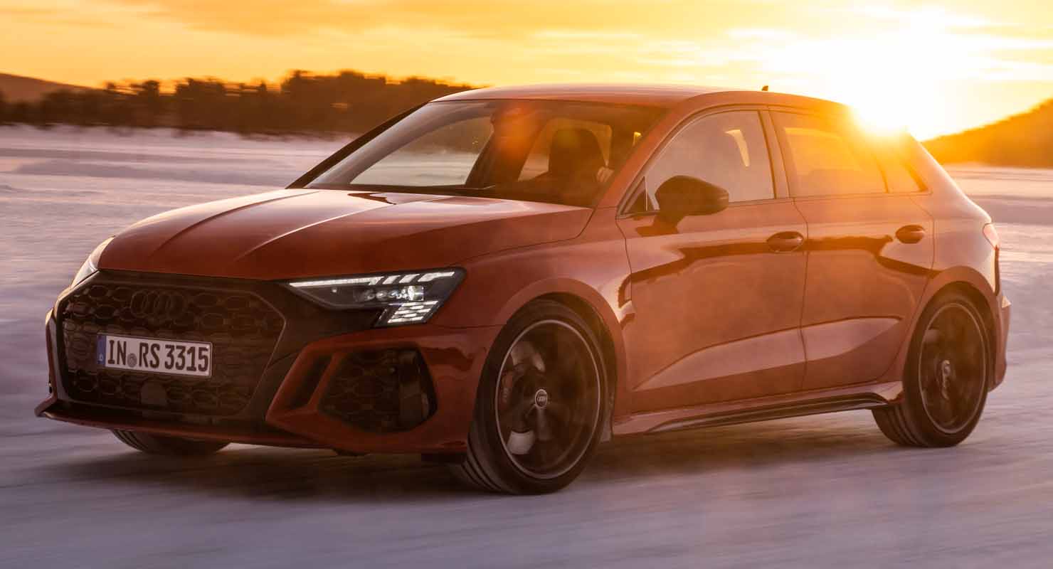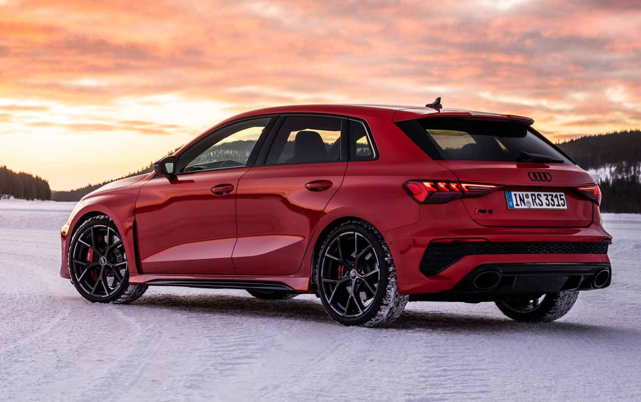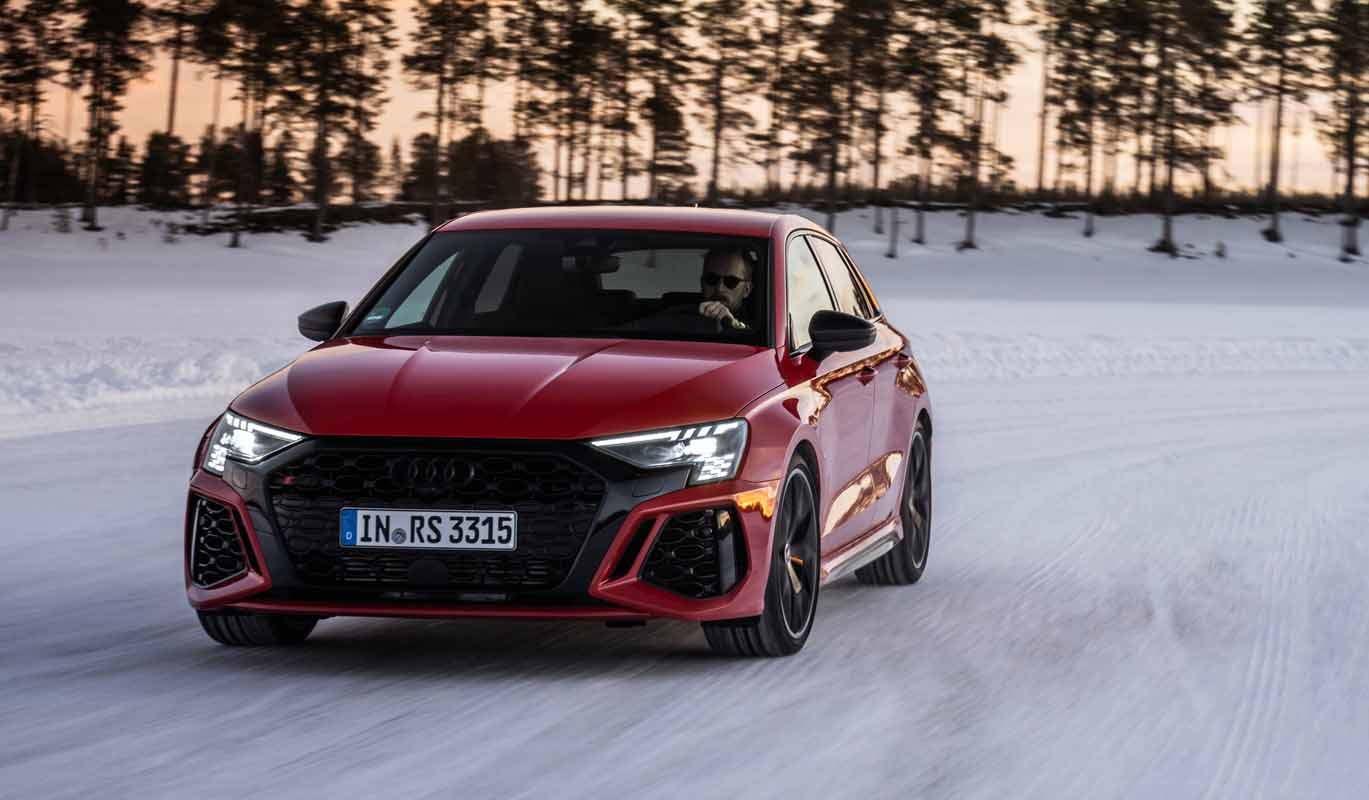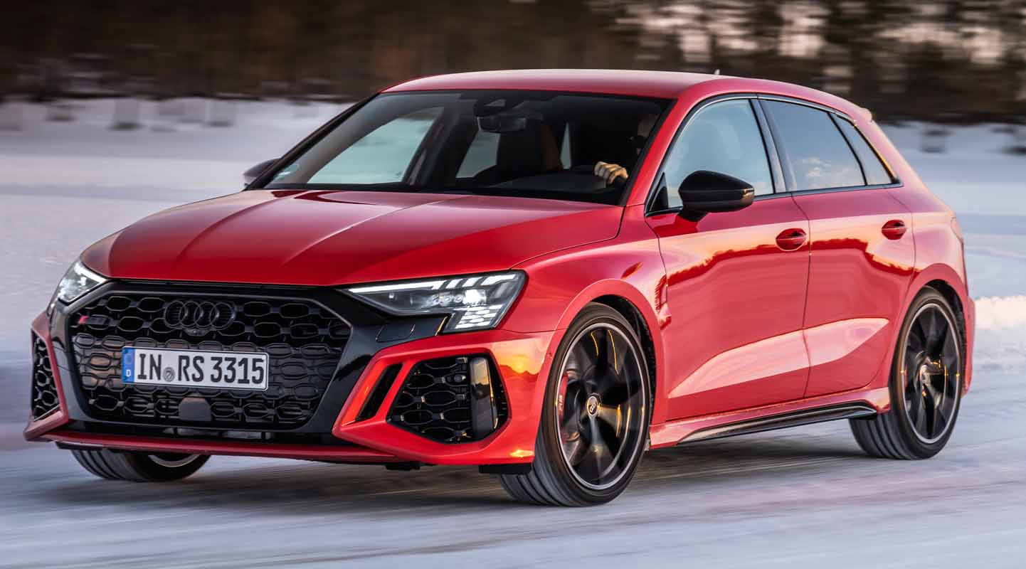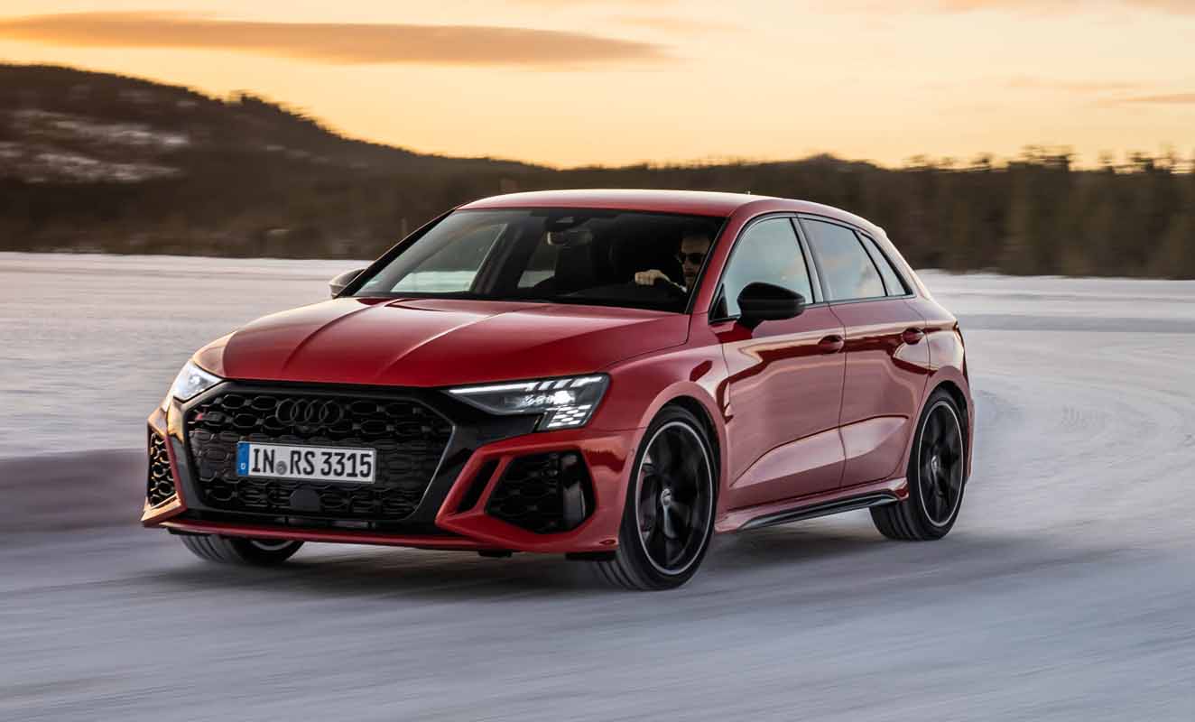 Drifting and sporty driving with lateral dynamics are a huge amount of fun – especially with the five-cylinder turbocharged engine developing 400 PS, plus ceramic brakes and RS sport suspension.
