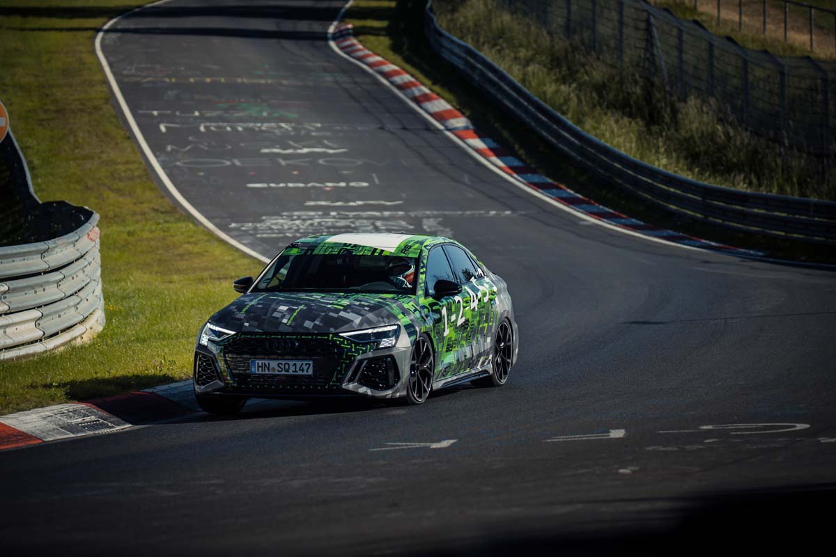 With a time of 7:40.748 minutes, the new Audi RS 3 Seda1 is the fastest compact model on the Nürburgring Nordschleife. In June, Audi Sport racing and development driver Frank Stippler beat the previous lap record in that class by 4.64 seconds. Above all, the torque splitter, with its fully variable torque distribution on the rear axle, contributed to the record time – Vorsprung durch Technik.