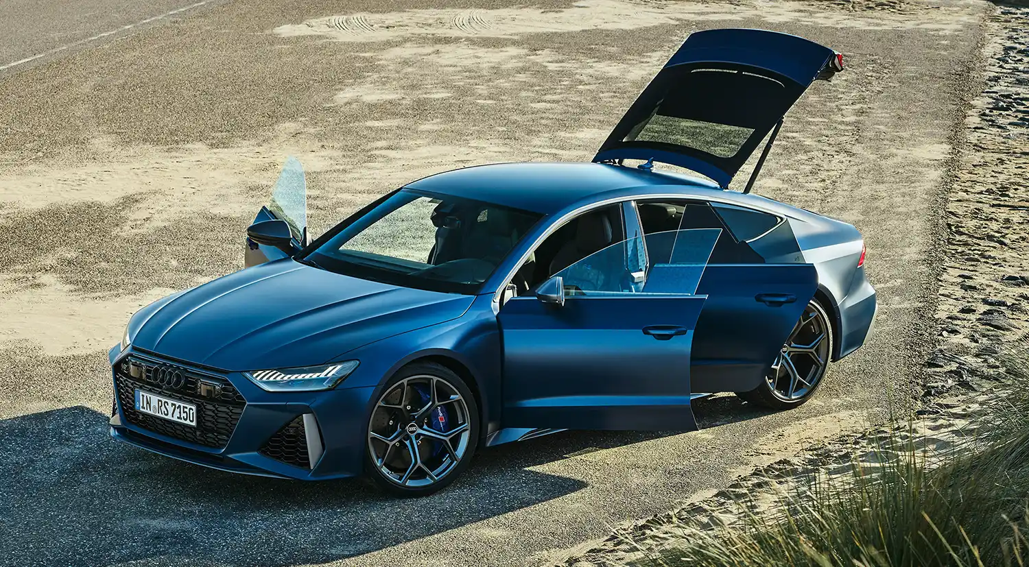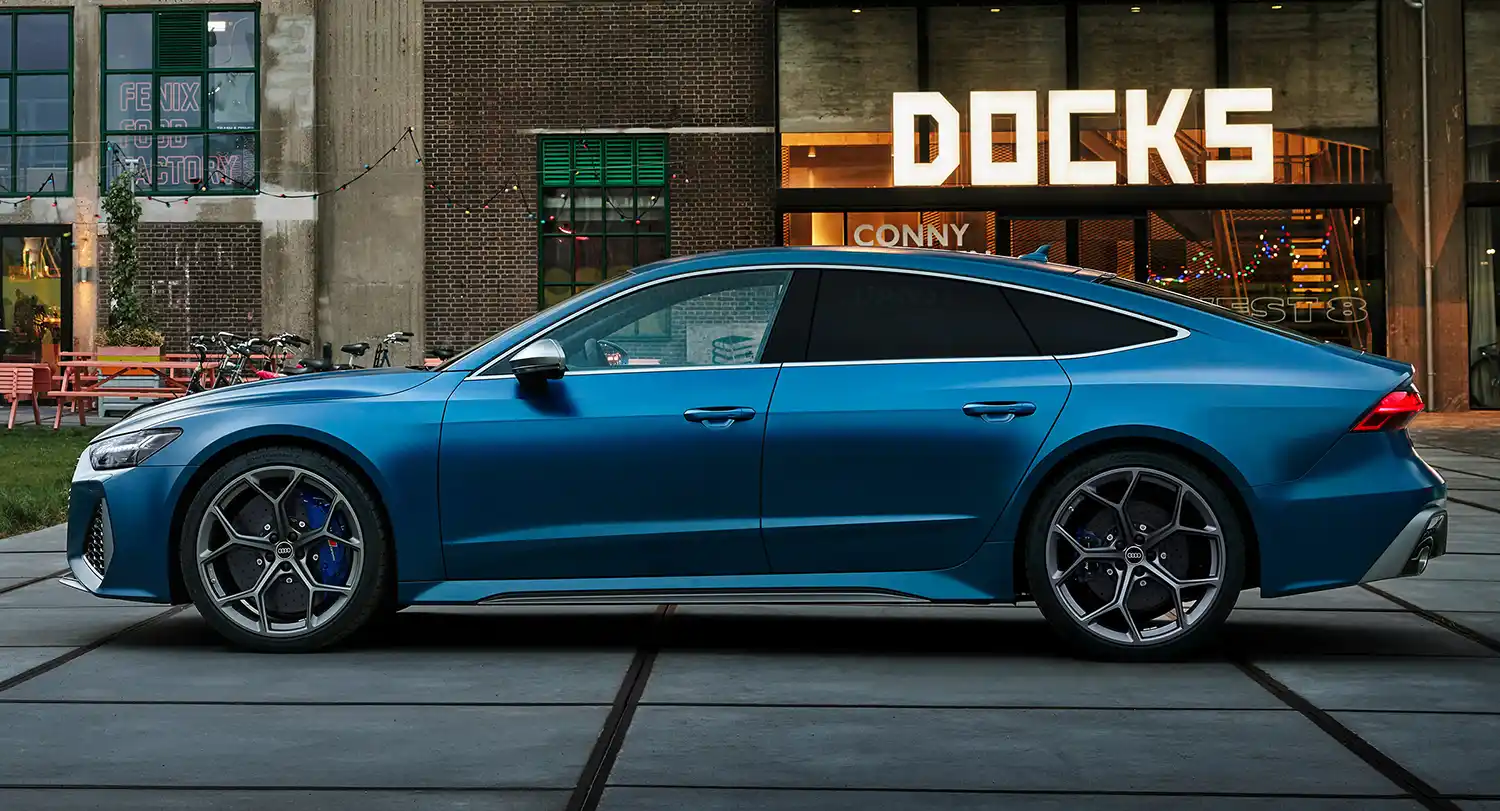 The new RS 6 Avant performance1 and RS 7 Sportback performance2 are available in a total of 16 exterior colors – for the first time, metallic and matte Ascari Blue and matte Dew Silver are included.The performance models stand out with standard RS exterior components in matte gray, including the exterior mirrors, the front spoiler, the front side flaps, the side sill inserts, the roof rails, and the trim on the side windows and rear diffuser. A matte carbon/black optics package is also an option, in which the roof rails and trim on the side windows are black. The Audi rings and model name is available in the customer’s choice of chrome or black.