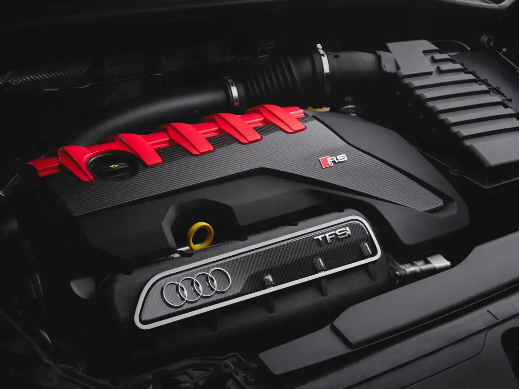 The special firing order 1-2-4-5-3 and the odd number of cylinders create a unique engine sound. The RS dual exhaust system emphasizes the characteristic sound of the five-cylinder engine, while the optionally available RS sports exhaust system sharpens it even further. The five-cylinder engine was awarded the coveted “International Engine of the Year Award” nine times in a row. The power of the five-cylinder engine runs to the quattro permanent all-wheel drive via a seven-speed S tronic as standard equipment.