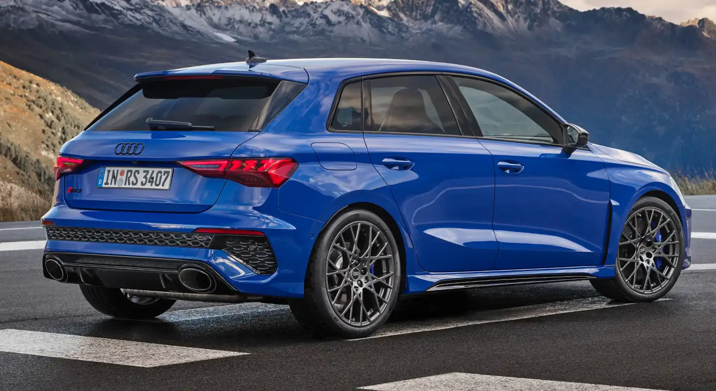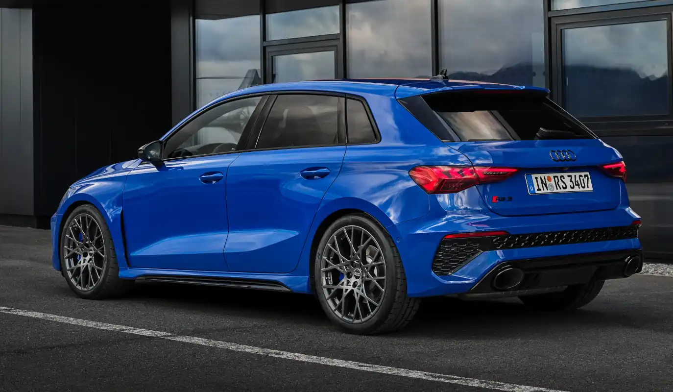 The special model shows its leading position in the RS3 portfolio with a wide range of new design-elements and equipment: in addition to the motorsport-design wheels and the RS-sports exhaust system with black tailpipe trims, the Audi rings and the RS3 badge on the front and rear are also black. This is in perfect harmony with the particular finishes on the RS3 performance edition: these include the pearl-effect colors Nogaro Blue, Arrow Gray and Daytona Gray as well as Sebring Black Crystal Effect and Glacier White Metallic.