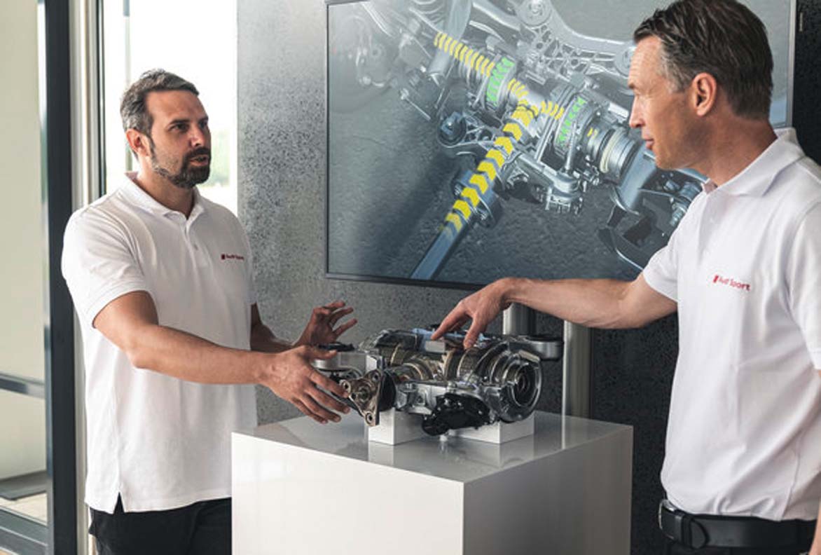 Frank Stippler: In general, the car is much more agile in its driving from the middle of the curve to the end and also when accelerating out of the curve. All-wheel drive cars have great tracking stability, but they tend to understeer at the very upper limits. We were looking for a solution that would minimize that behavior. The torque splitter distributes more weight onto the rear axle. With it, the car develops a driving dynamic that oversteers. And that’s where the Audi drive select system comes in, which helps meter that tendency based on use, road conditions and individual preferences. We can get really fast in RS Performance mode, the mode for circuit driving that is designed especially for semi-slick tires. For me, the RS torque splitter is a quantum leap in terms of agile driving.