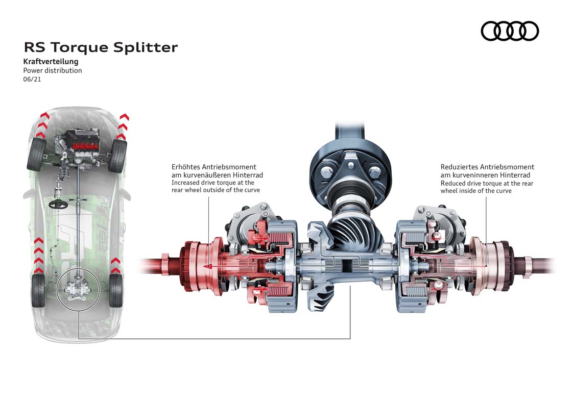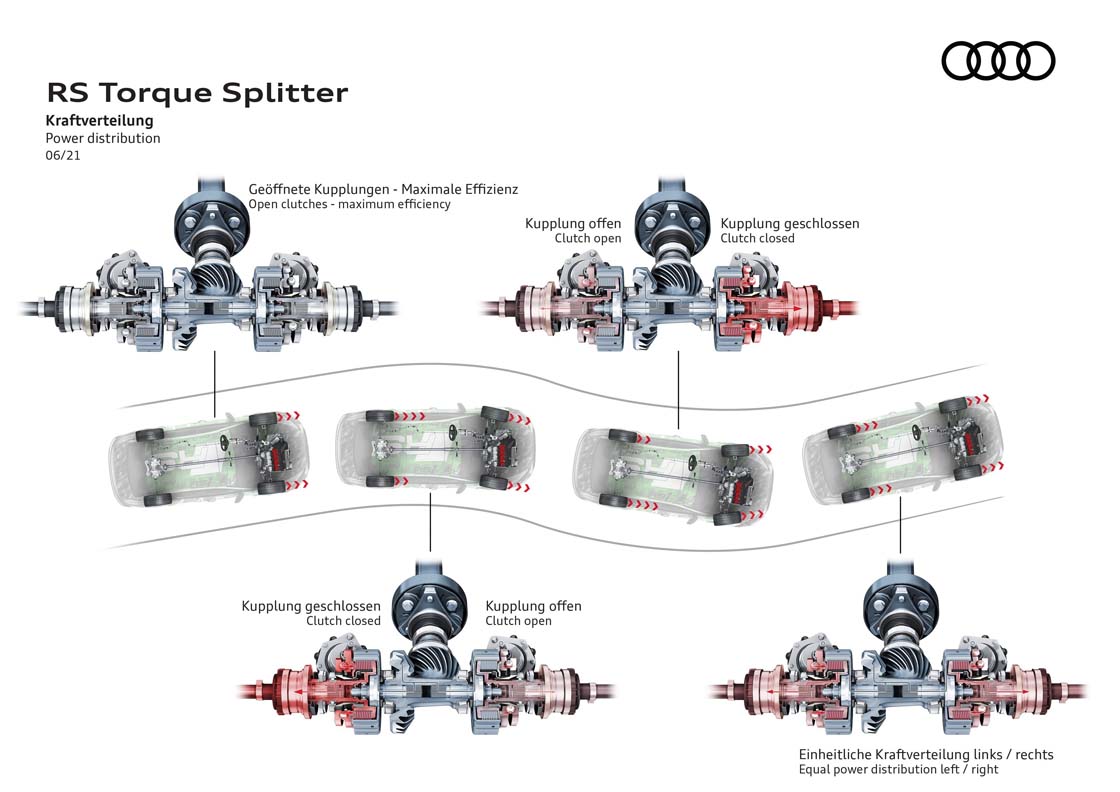 Meic Diessner: It recognizes, for example, if the road is wet or dry. So the driver doesn’t have to change the mode. That means that the car automatically reacts differently in RS Performance mode it the road is wet than it would when it is dry. The driver also benefits from the variability of the RS torque splitter all the way to the top speed. So they always have quattro drive when it is needed.