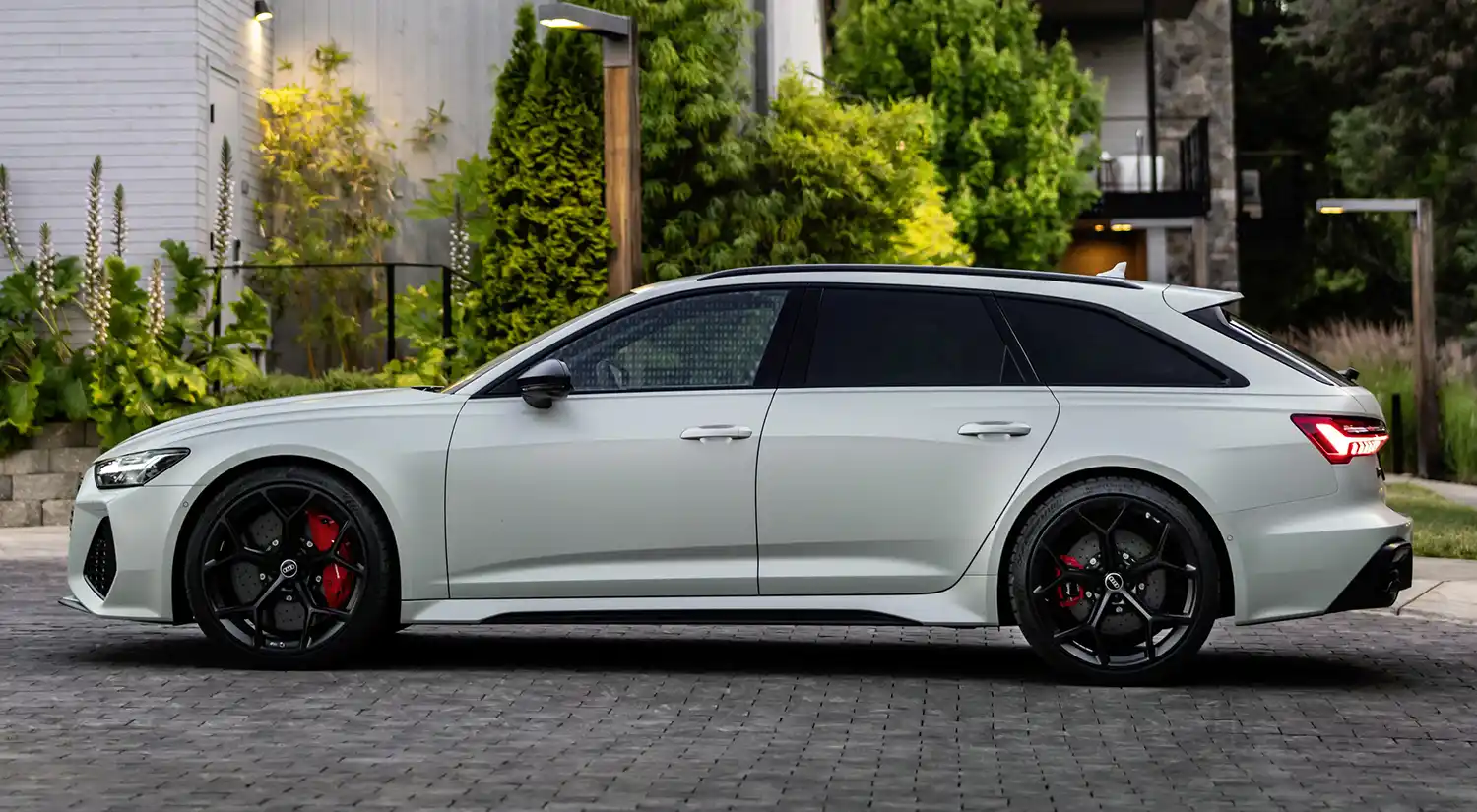 The new RS 6 Avant performance and RS 7 Sportback performance are available in a total of 16 exterior colors – for the first time, metallic and matte Ascari Blue and matte Dew Silver are included.The performance models stand out with standard RS exterior components in matte gray, including the exterior mirrors, the front spoiler, the front side flaps, the side sill inserts, the roof rails, and the trim on the side windows and rear diffuser. A matte carbon/black optics package is also an option, in which the roof rails and trim on the side windows are black. The Audi rings and model name is available in the customer’s choice of chrome or black.