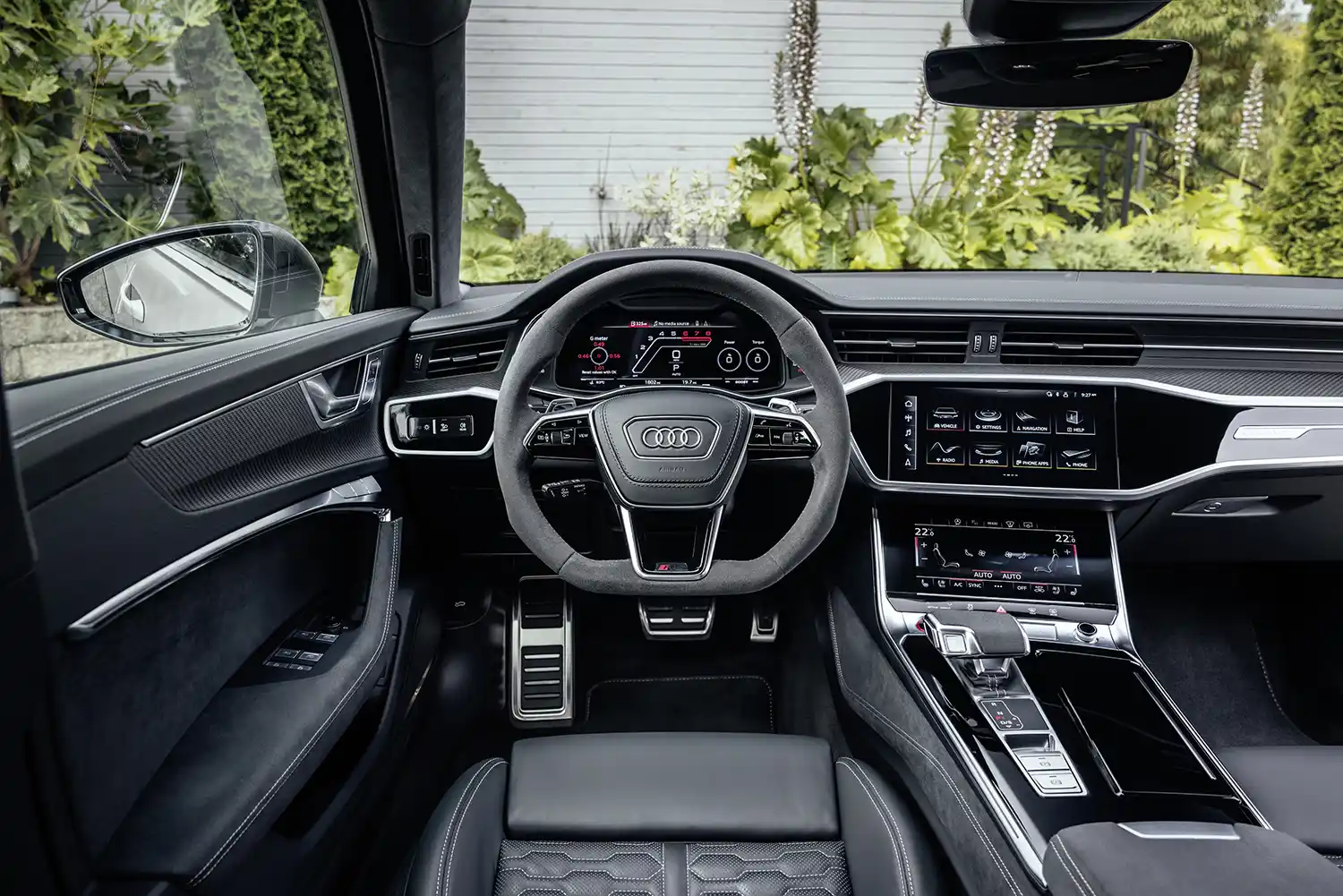 The Audi drive select dynamic handling system lets the driver control the vehicle’s character. Six profiles are available: efficiency, comfort, auto, dynamic, as well as two customizable RS-specific RS1 and RS2 modes.
