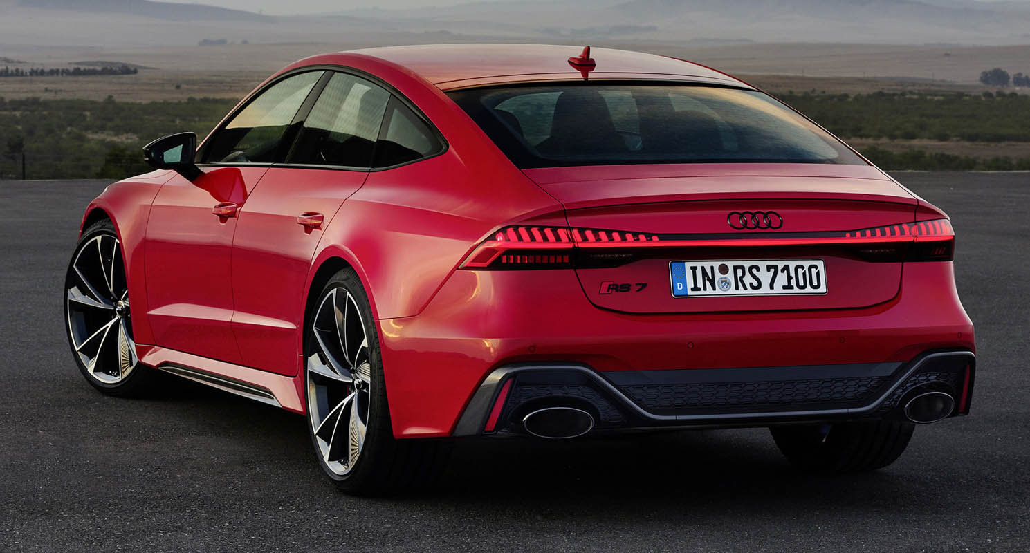 The drag coefficient of the new Audi RS7 Sportback is 0.32. The Audi Aerodynamics team put in a lot of work into all areas, including on the exterior mirrors and the rear axle trim. Small spoilers direct the flow at the underbody, including in front of the wheels. The outer areas of the air inlets feature additional openings-they guide a portion of the air flow into the wheel arches, where it flows past the wheels. When the spoiler extends electrically at a speed of 100 km/h (62.1 mph), it noticeably reduces the buoyancy on the rear axle – even at top speed it is only 40 kilograms (88.2 lb).